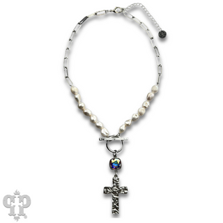 Linked bead necklace with Austrian crystal Santa Fe teardrop pendant