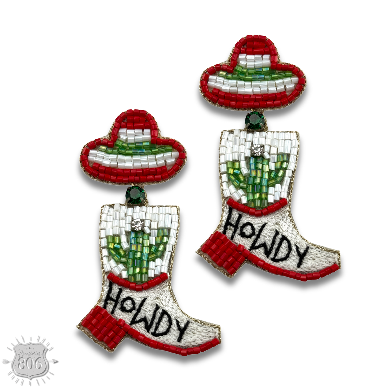 This boot earring channels western vibes with its seed and tube bead embellishments. "Howdy" is playfully spelled out along the bottom, topped off with a tiny sombrero hat.