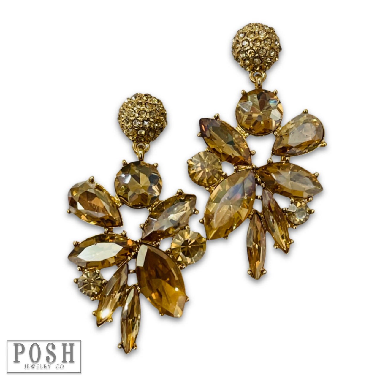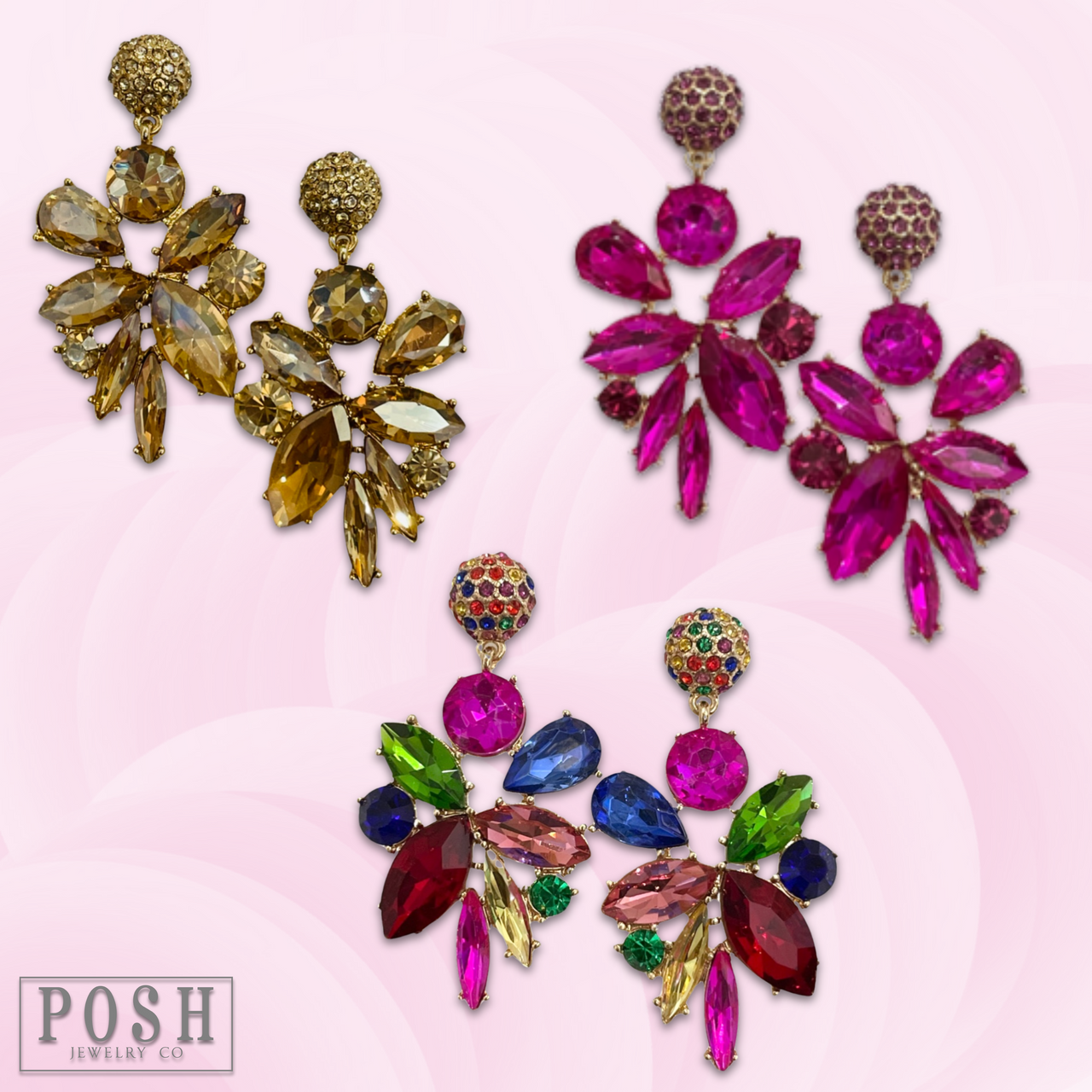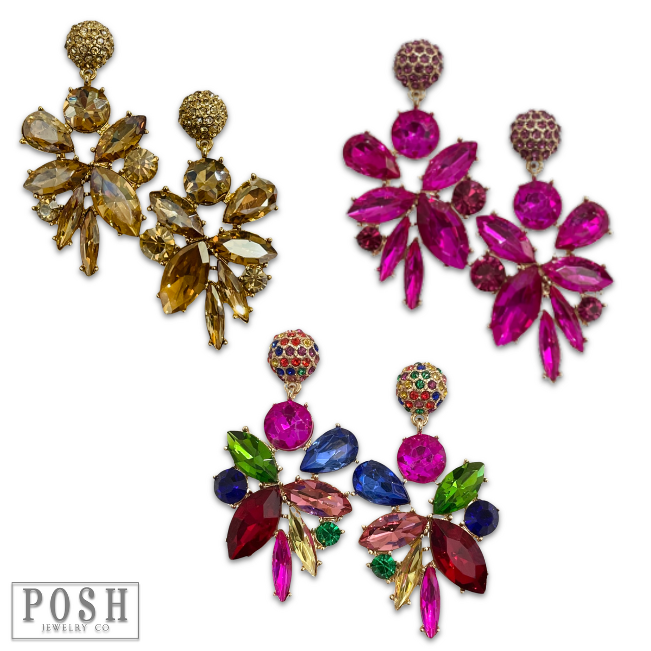These rhinestone-adorned post earrings feature a variety of rhinestone shapes dangling below. They're sure to make a statement