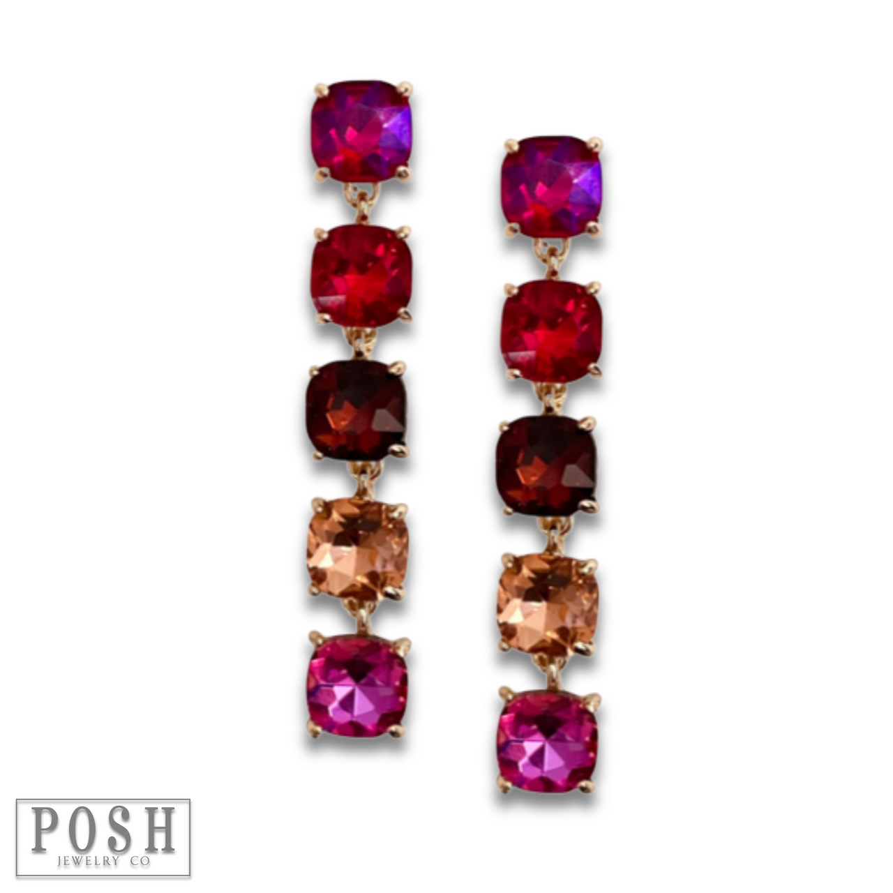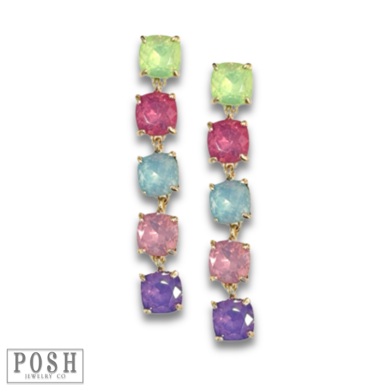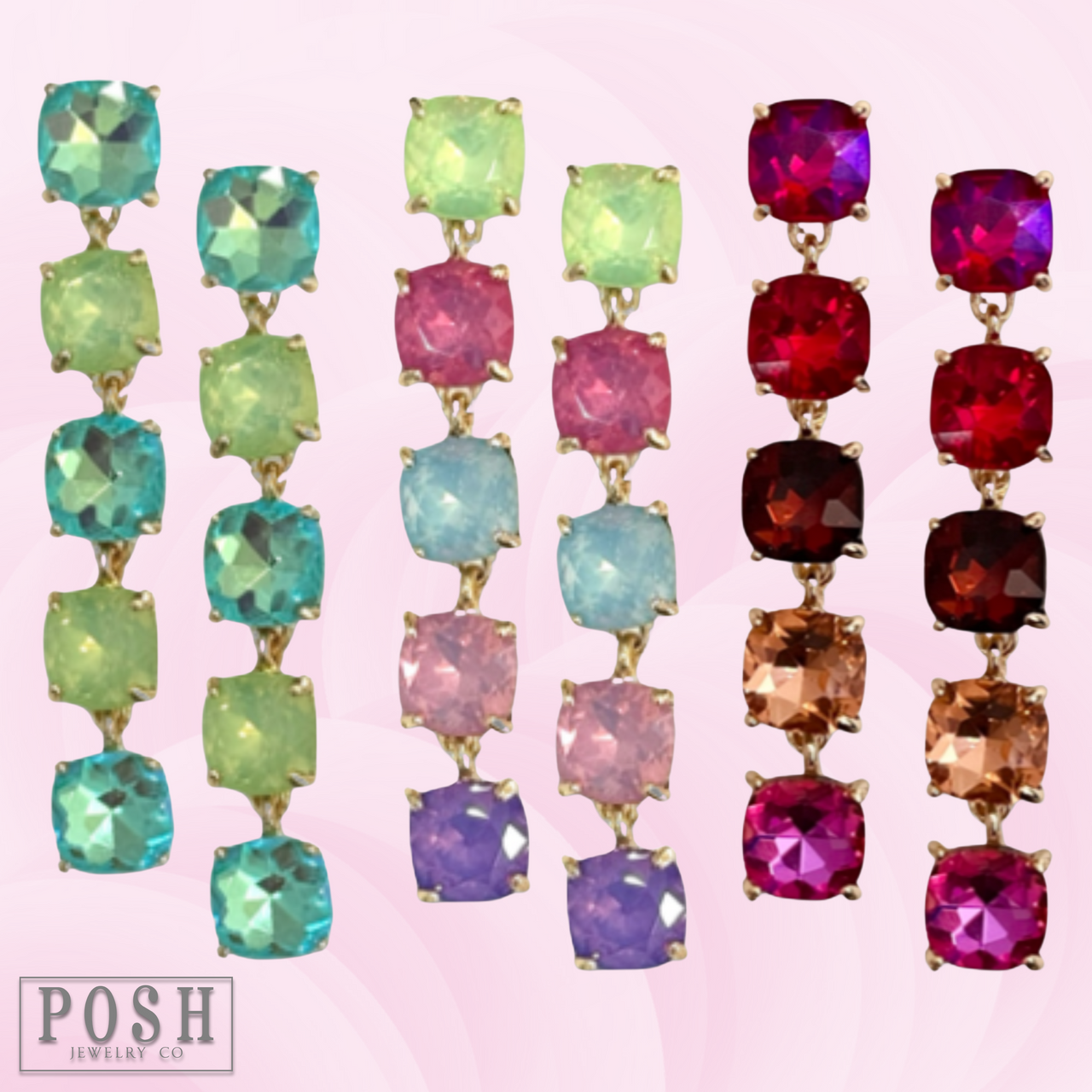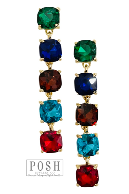 These post earrings feature five shimmering square shape rhinestones for that extra flash
