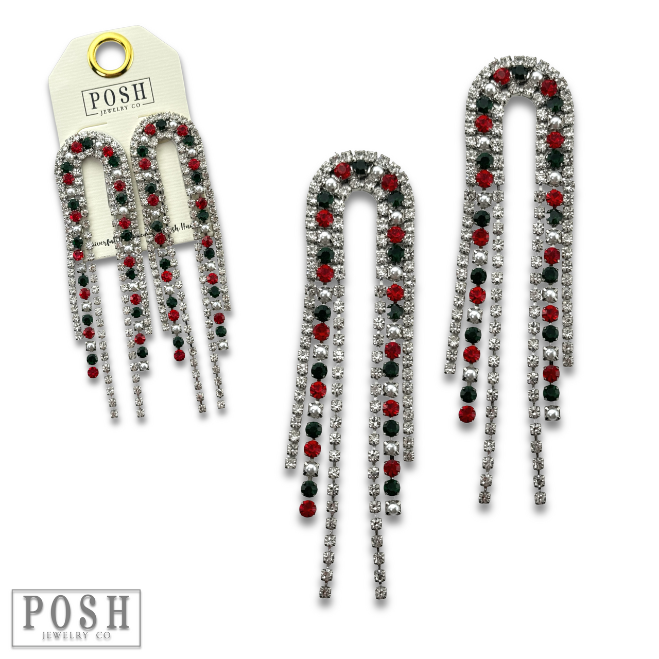 Arched rhinestone fringe earring