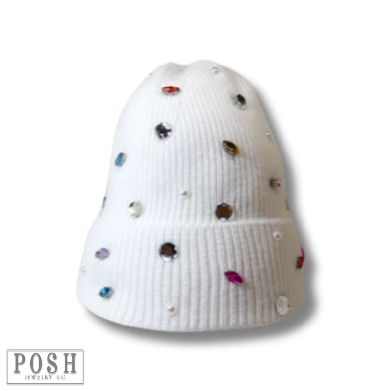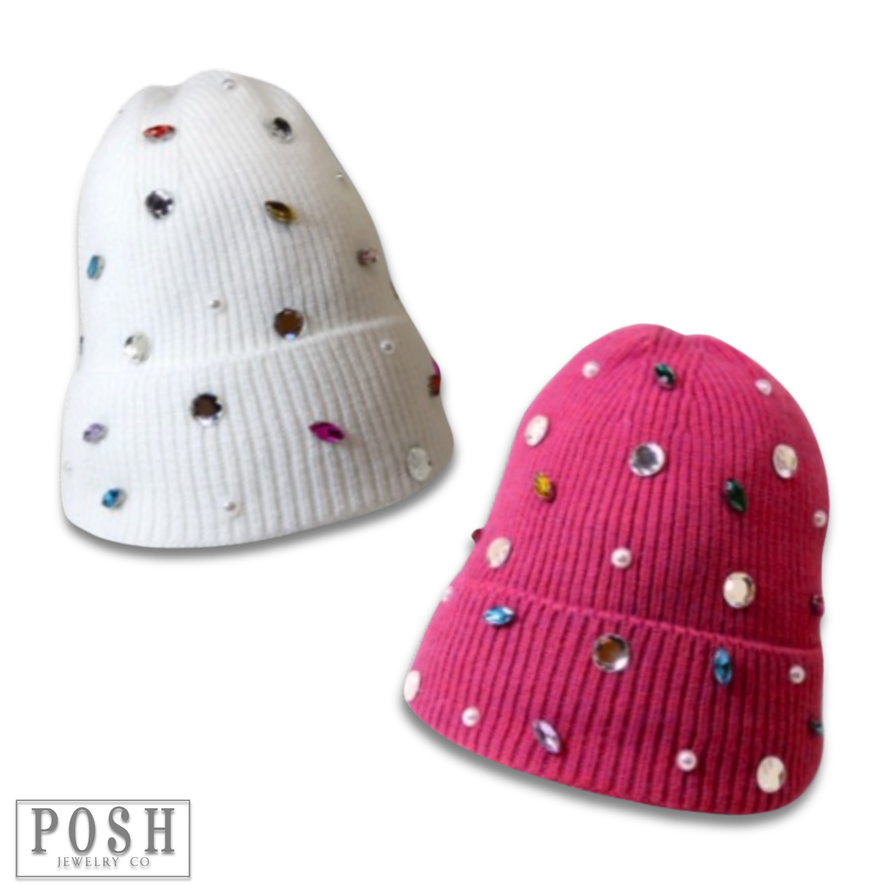 Rock out in these dazzling bejeweled knit beanies - sure to add some bling to your look!