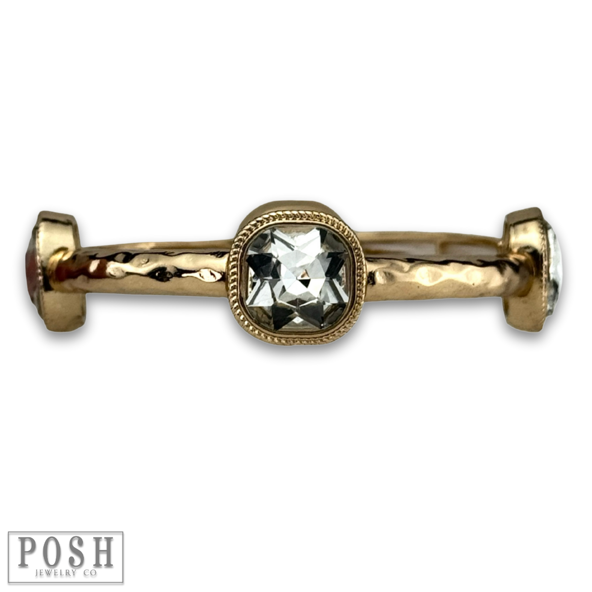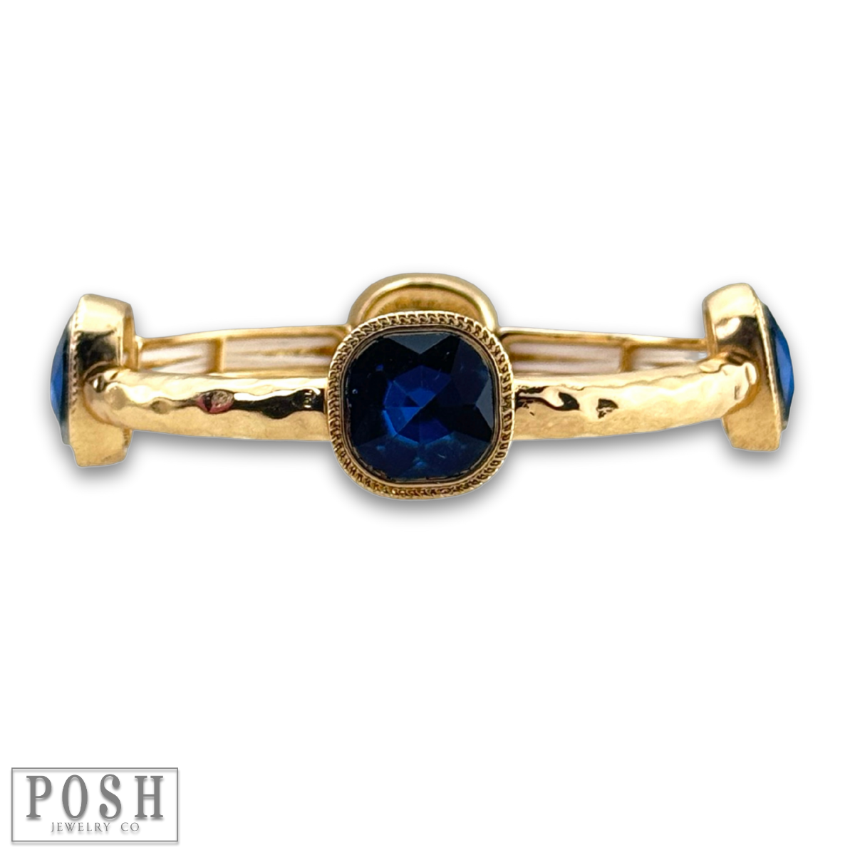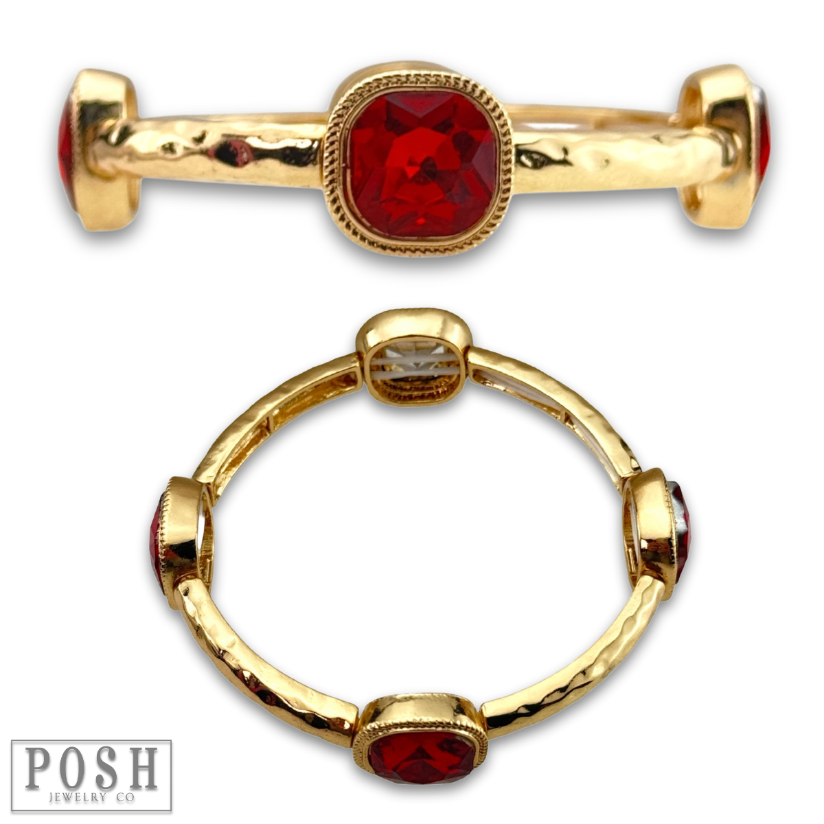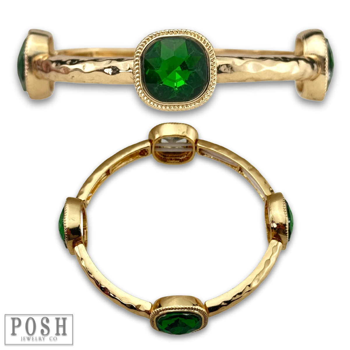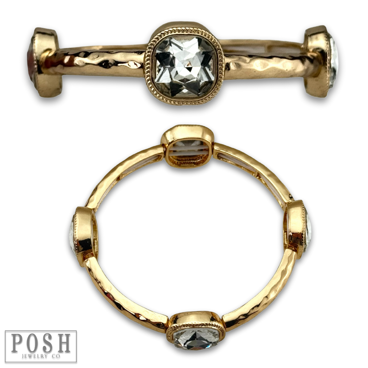 This stretch bracelet has square rhinestones in a gold tone setting.  The bracelet is on the smaller side but it stretches to fit most wrists.