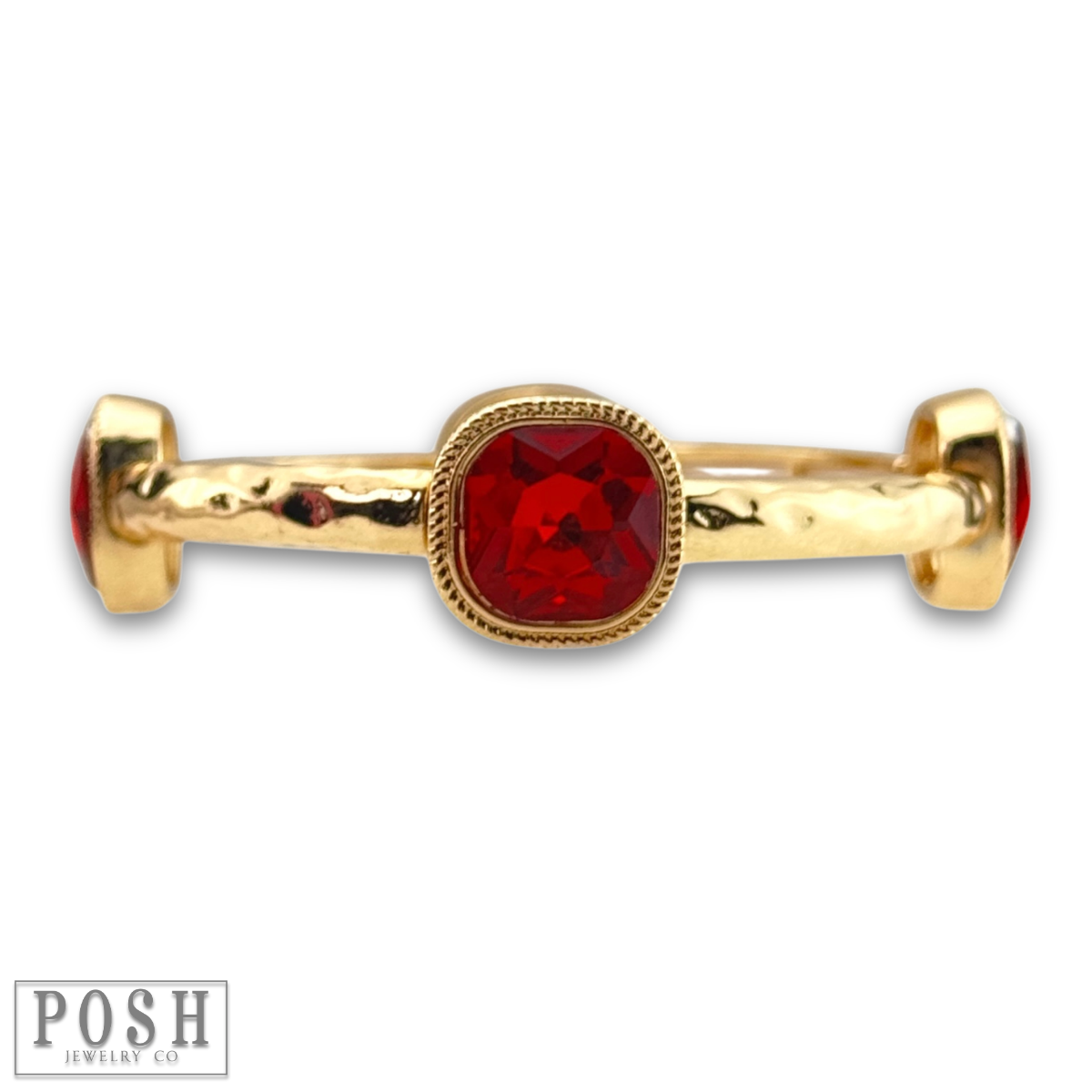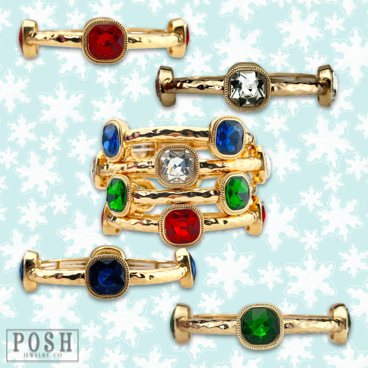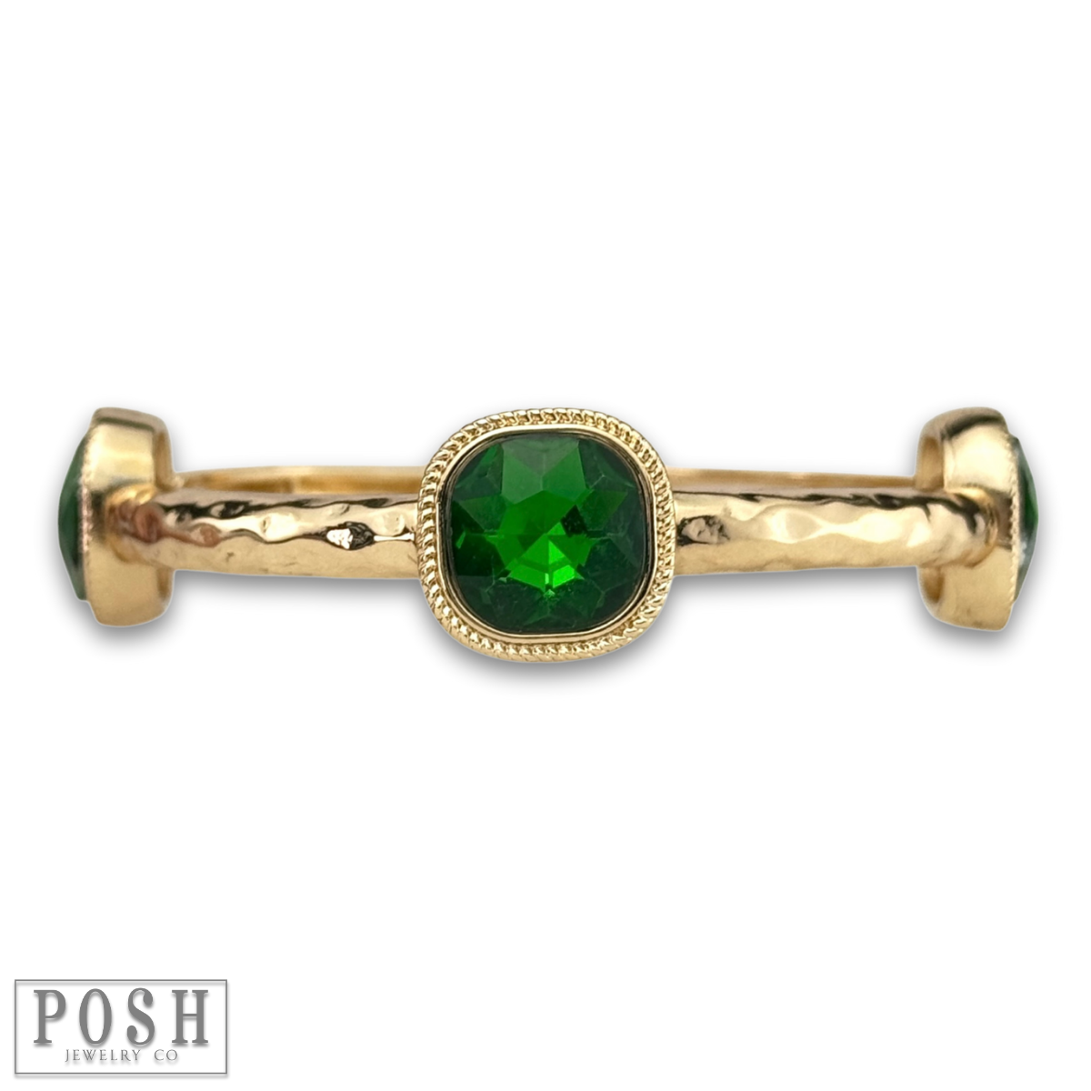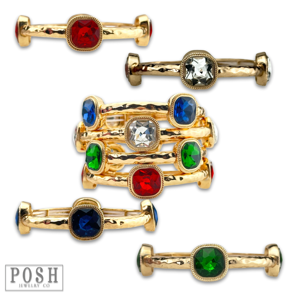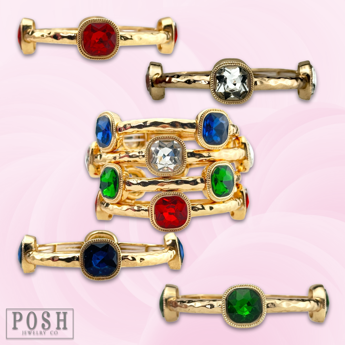 This stretch bracelet has square rhinestones in a gold tone setting.  The bracelet is on the smaller side but it stretches to fit most wrists.