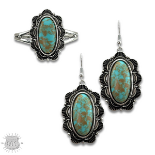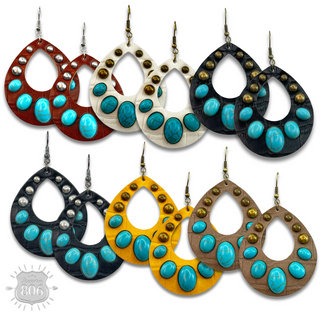 Western style rectangle earring with turquoise features