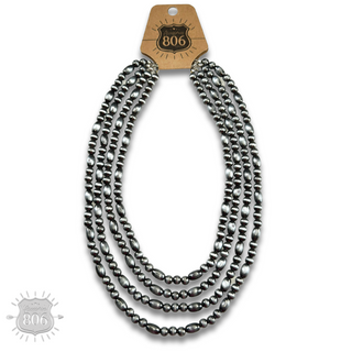 Western multi-layer silver bead necklace