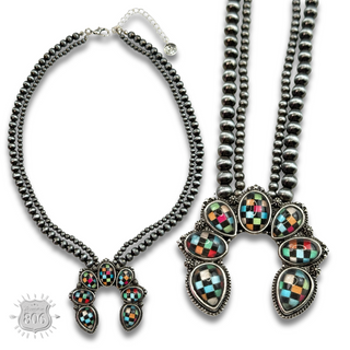 Checkerboard squash blossom necklace set