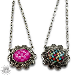 Oval checkerboard pendant necklace