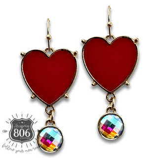 Enamel heart earring with rhinestone drop