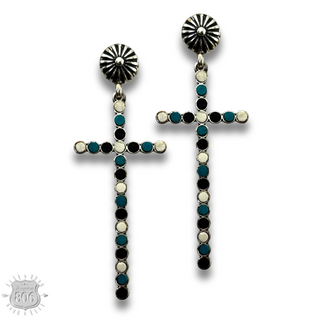 Western wood bead cross earring