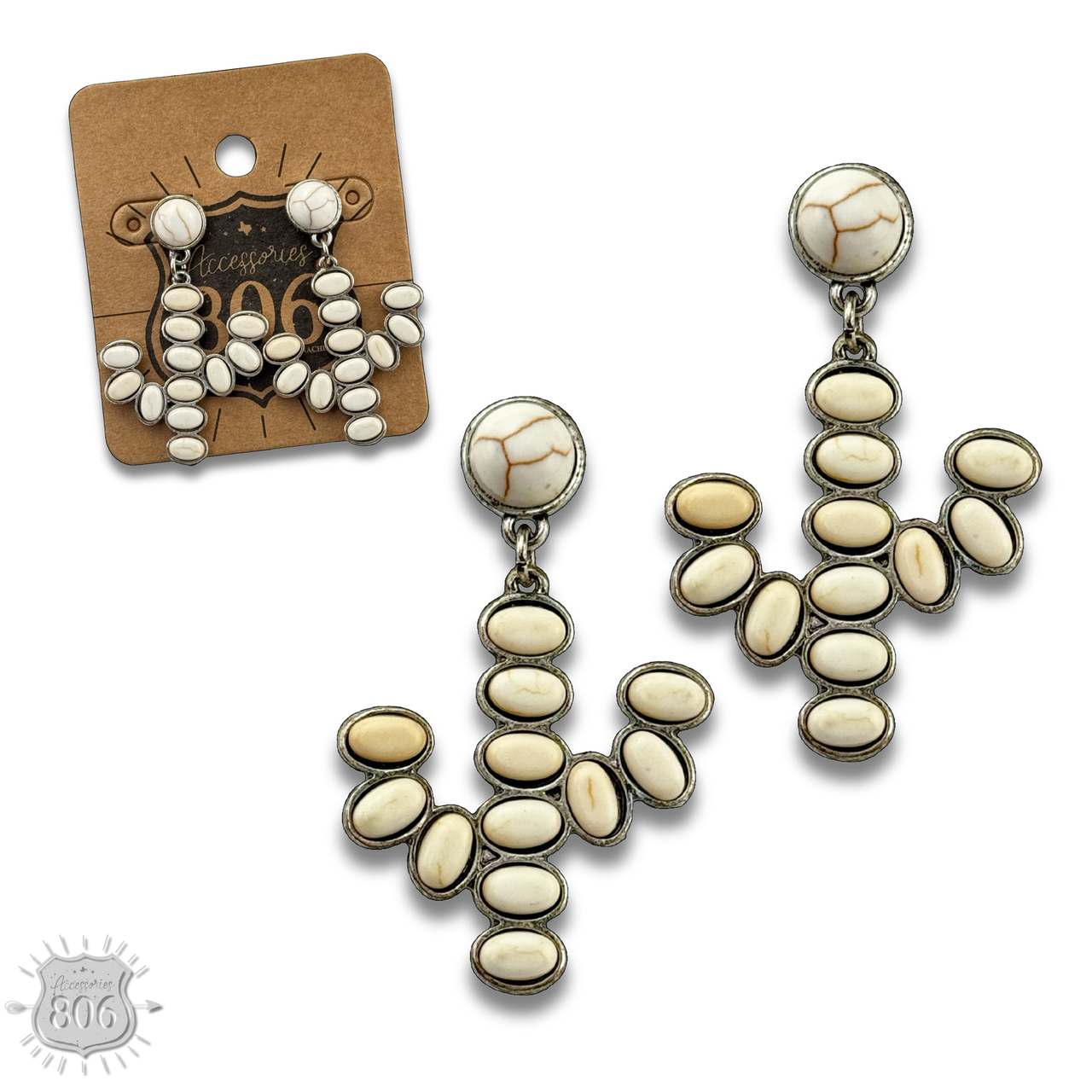 These earrings feature white stones in a cactus design.