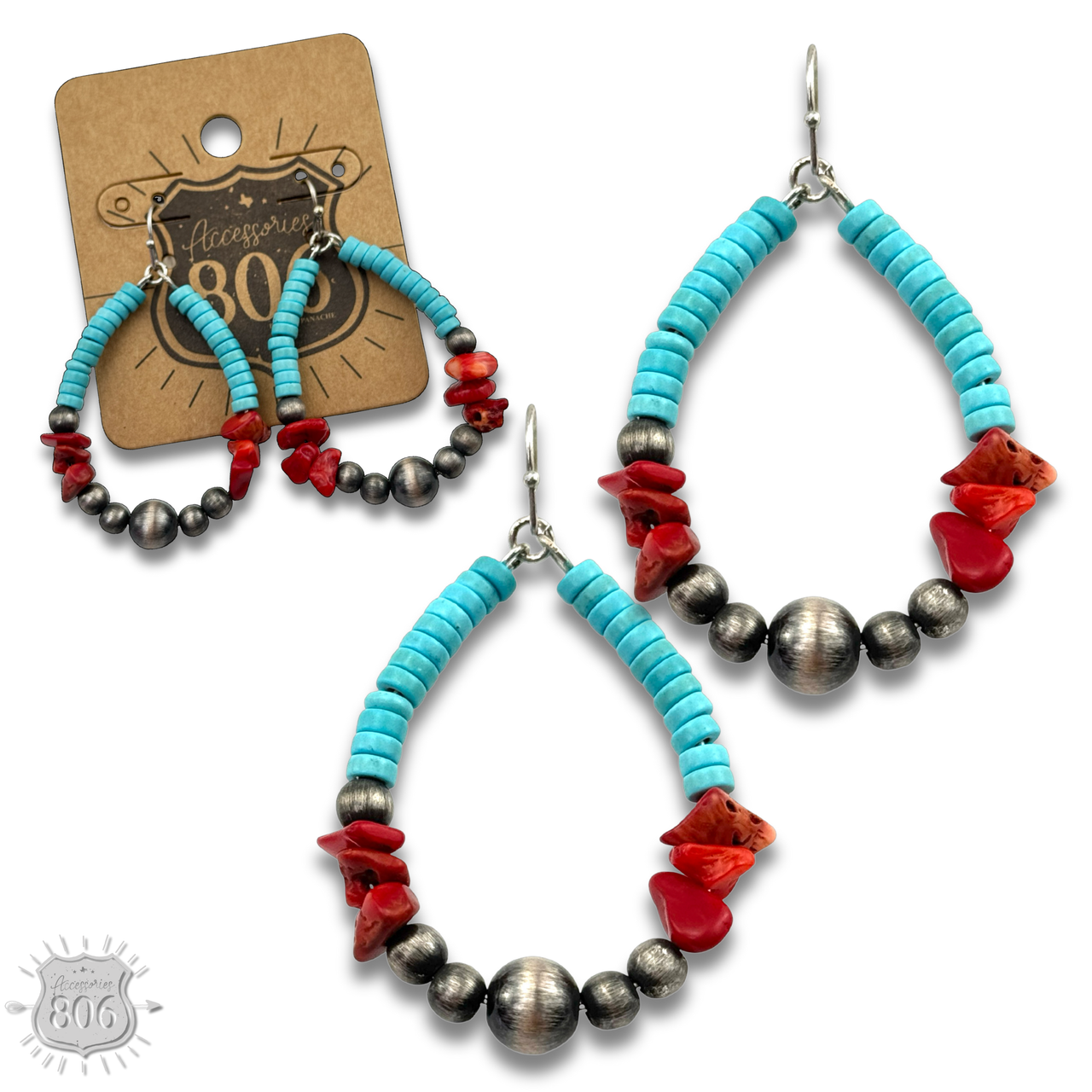 Get ready to rock your style with these funky stone teardrop earrings featuring a blend of stones and burnished silver beads.