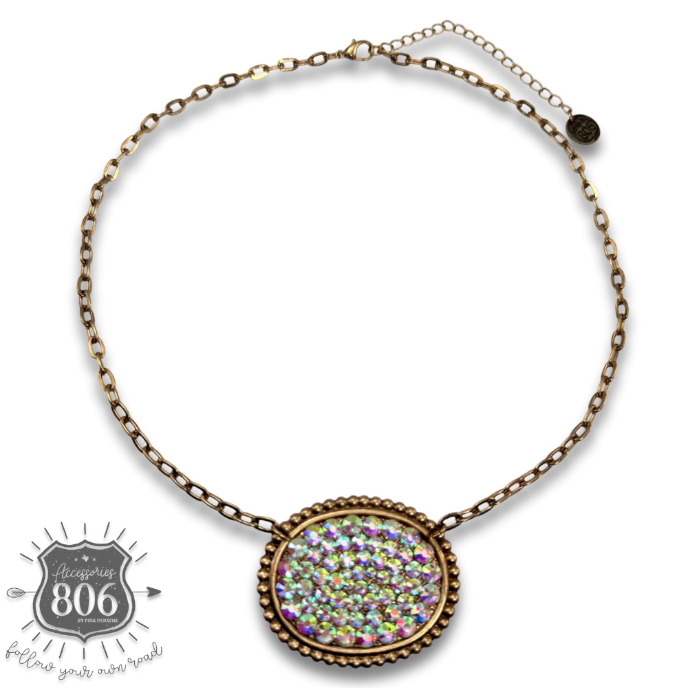 Rhinestone filled oval necklace