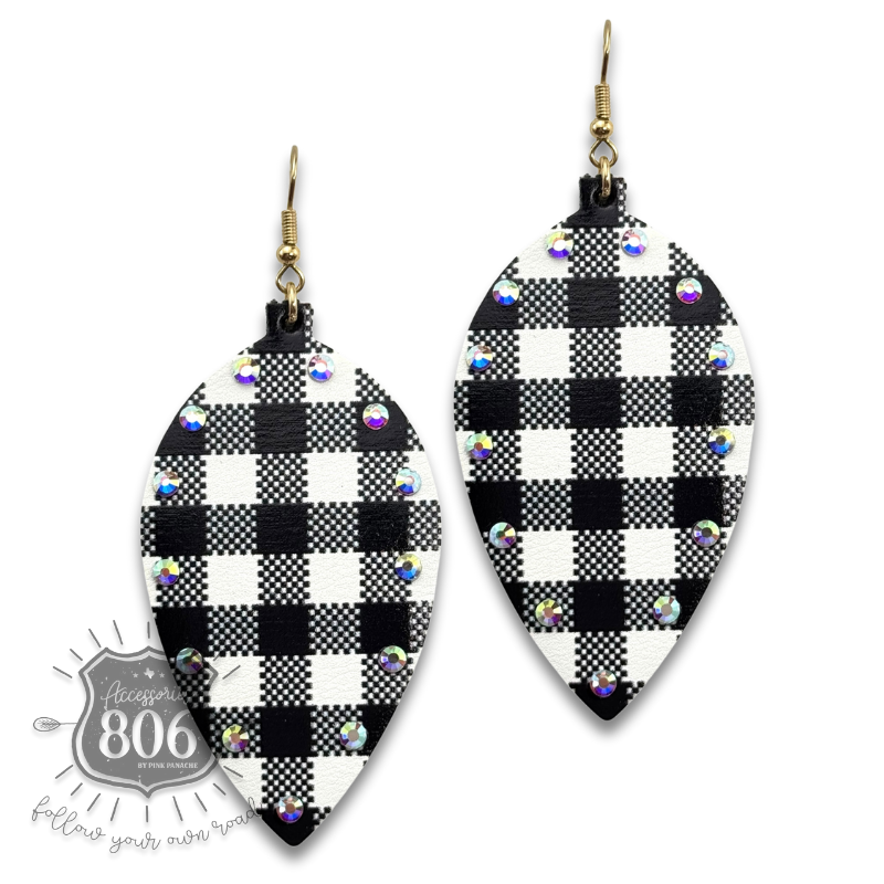 Adorn yourself with these unique and eye-catching embellished buffalo plaid drop earrings! Featuring stylish and popular buffalo plaid print, these earrings are the perfect accessory for any outfit. Add a touch of personality and charm to your look with these one-of-a-kind earrings.