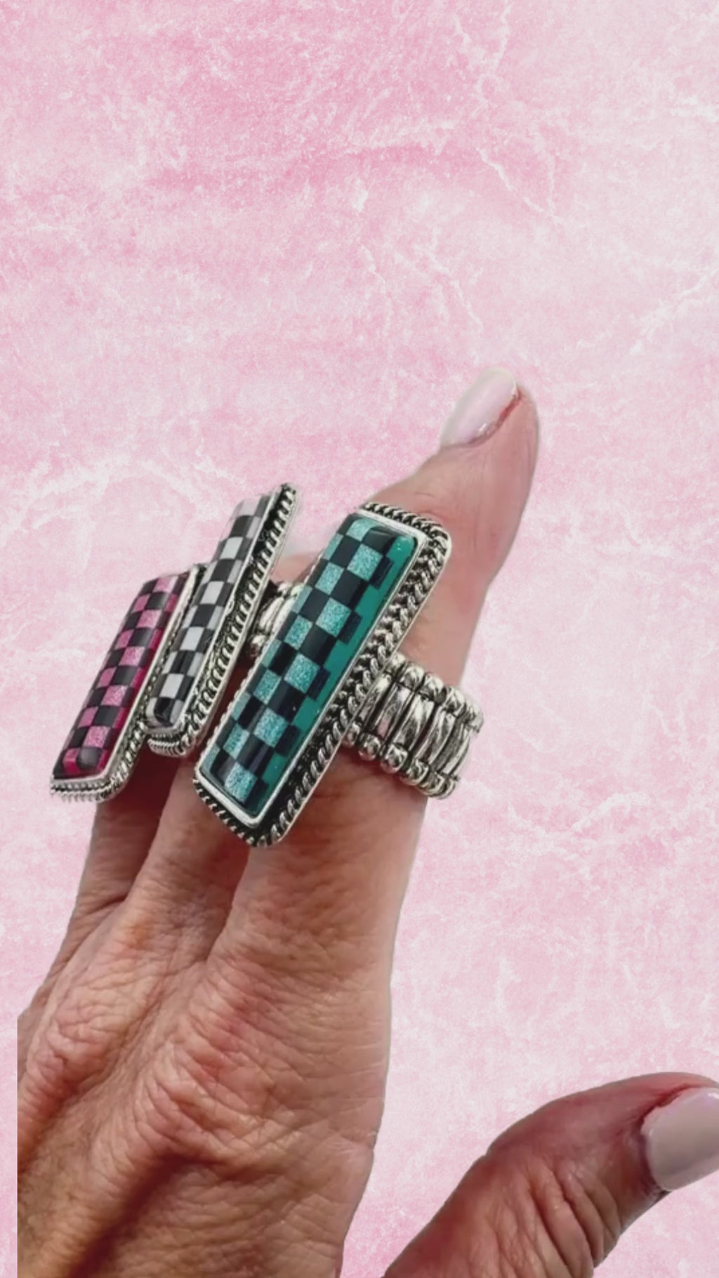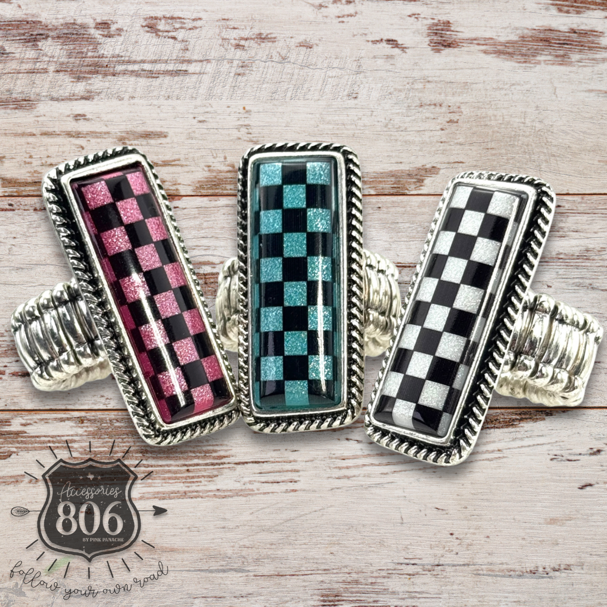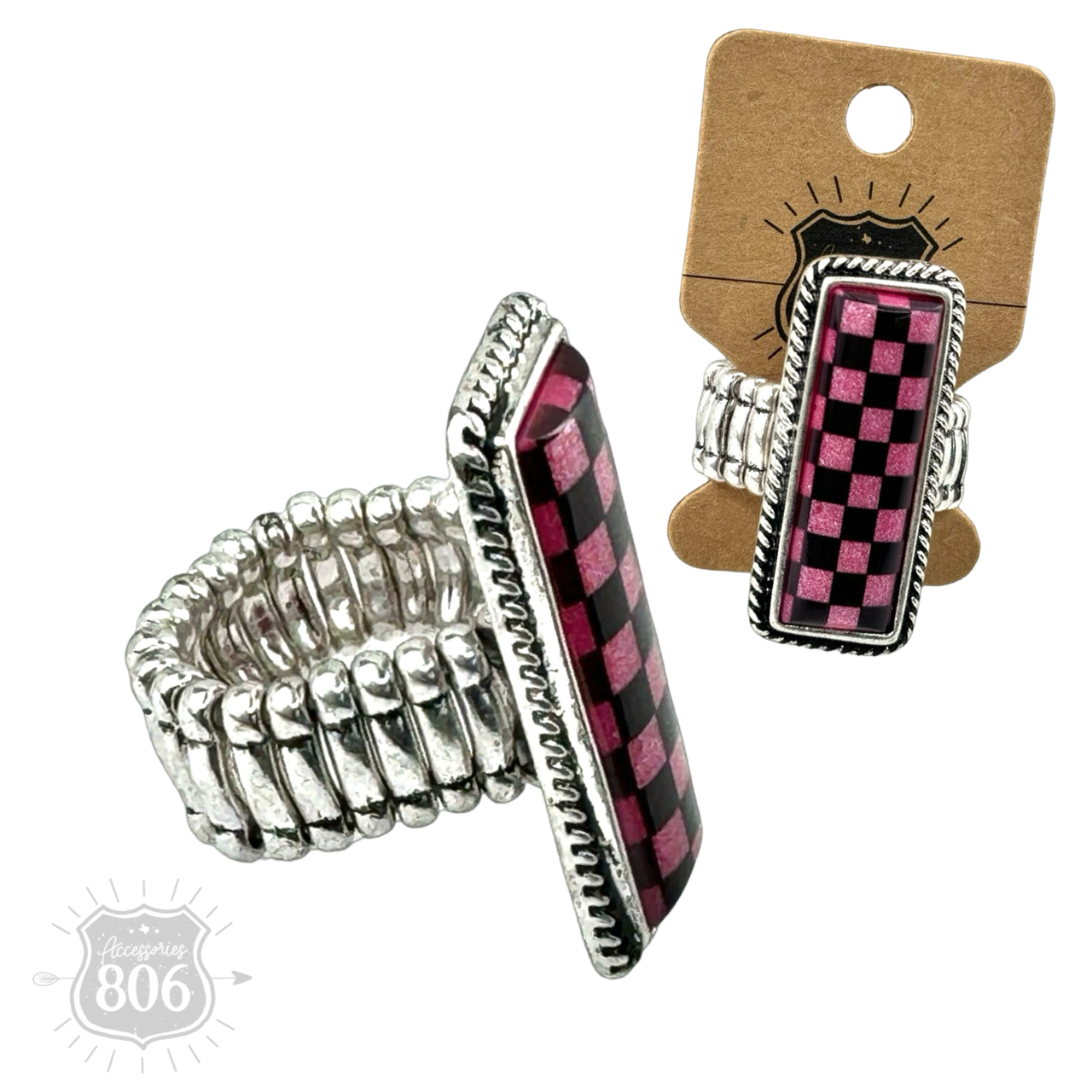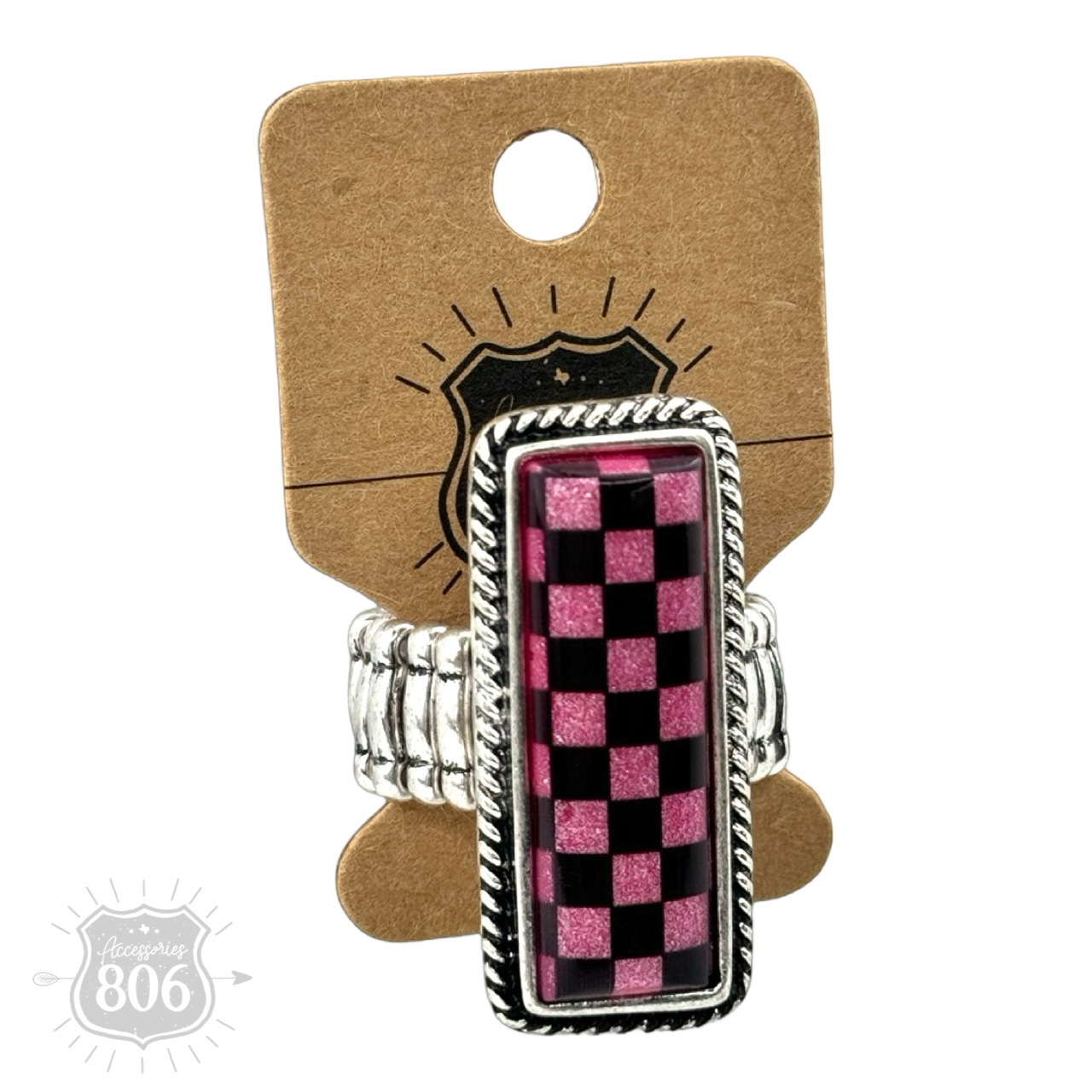 Checkerboard print stretch ring