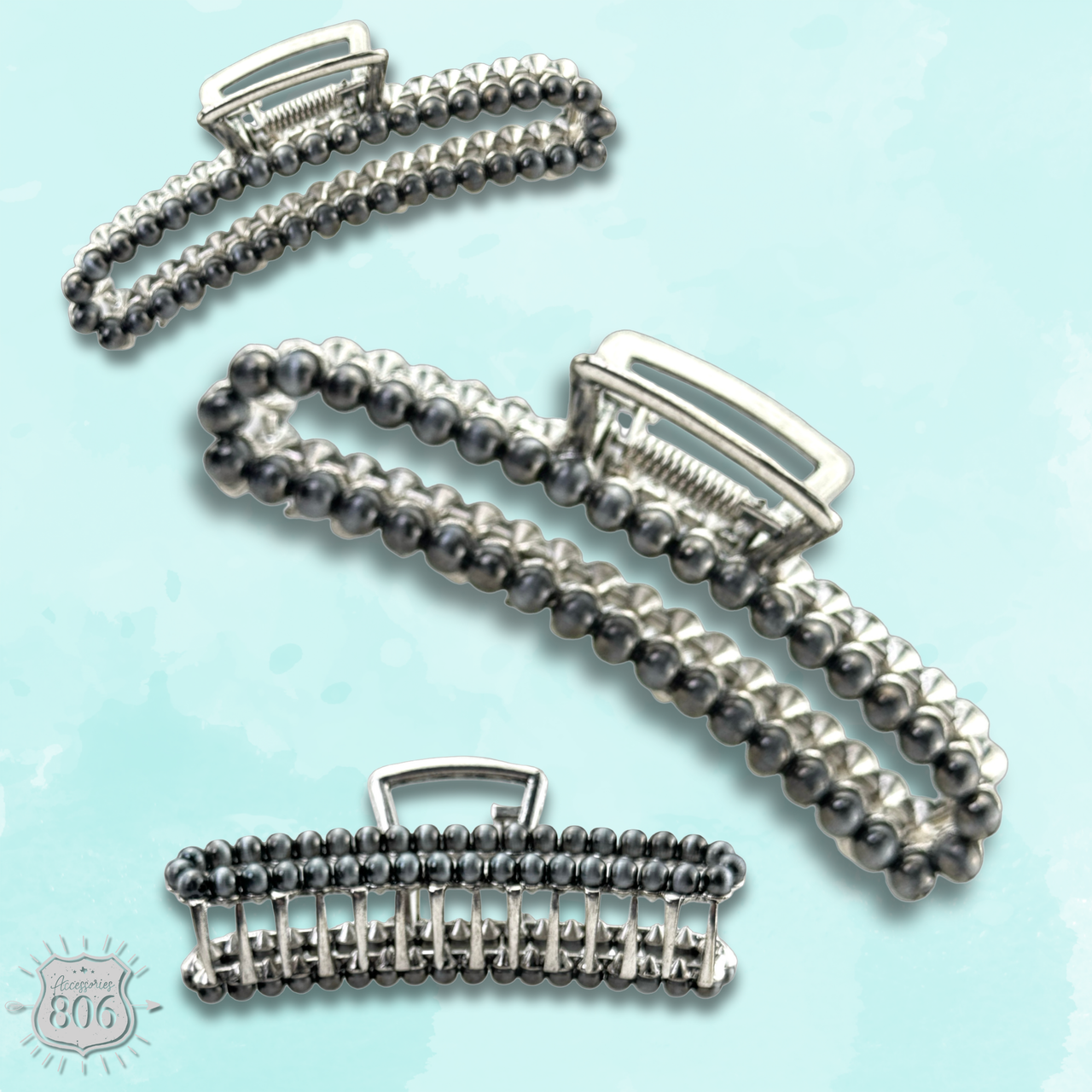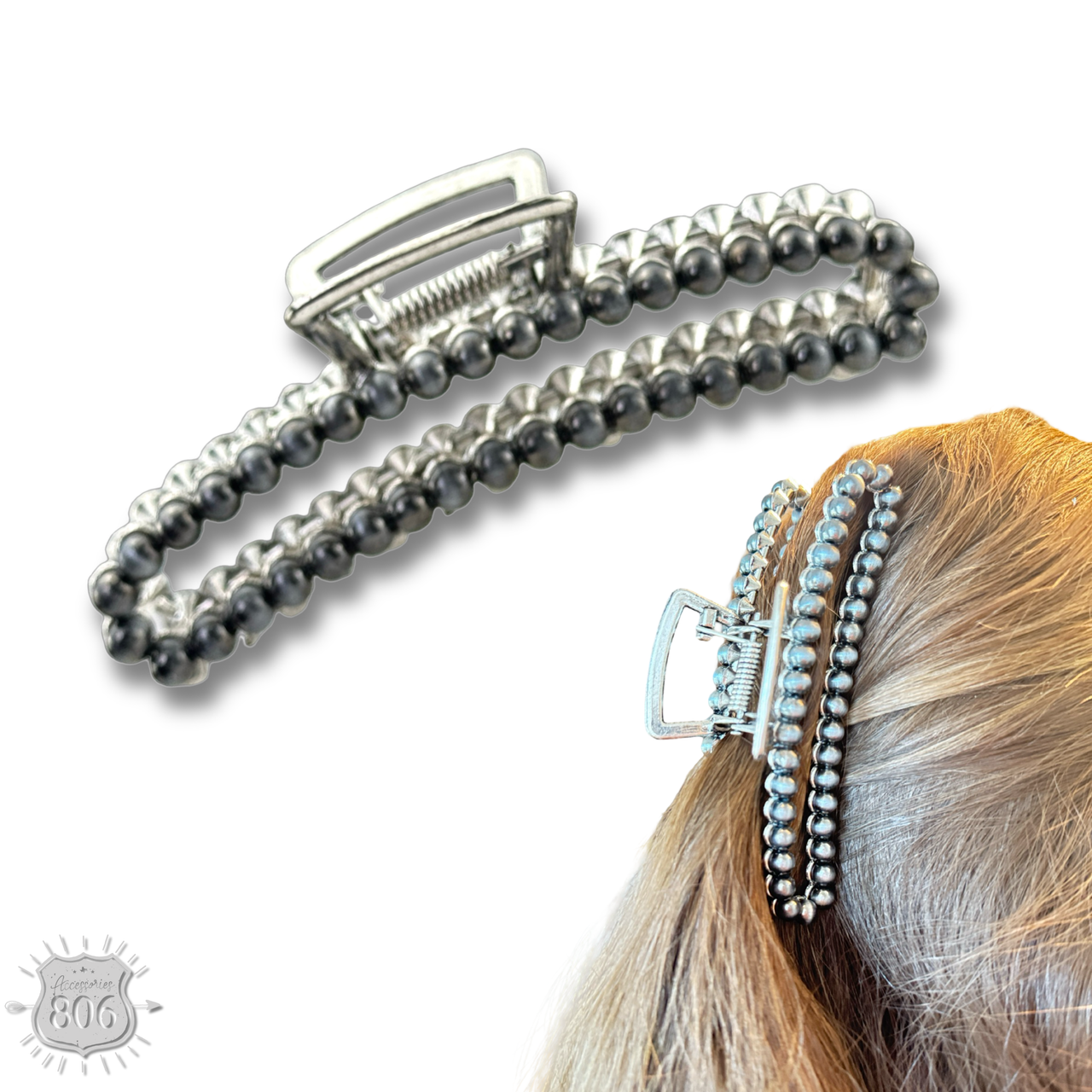 Large silver bead rectangle hair clip
