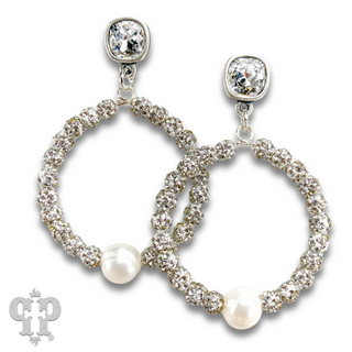 Oval gold flecked bead earring with Austrian crystal