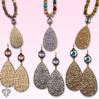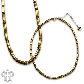 Cylinder stone linked bead with toggle closure and Austrian crystal necklace