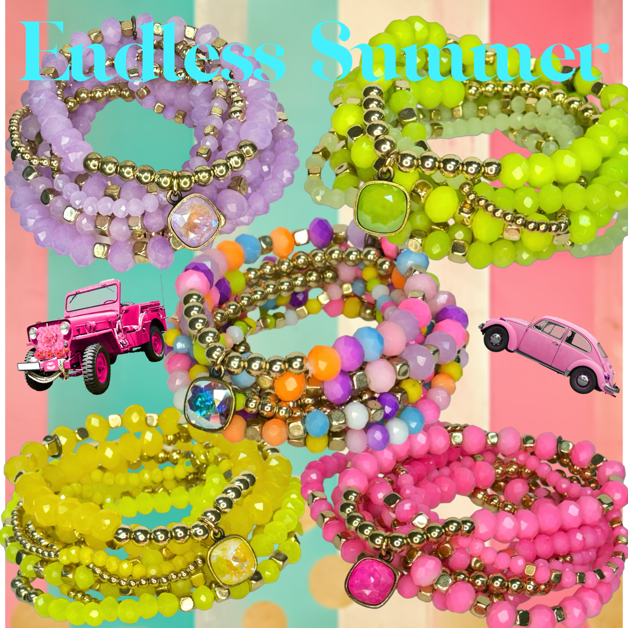 Beaded bracelet stack set, Austrian crystal