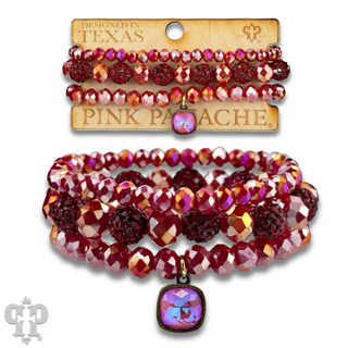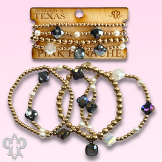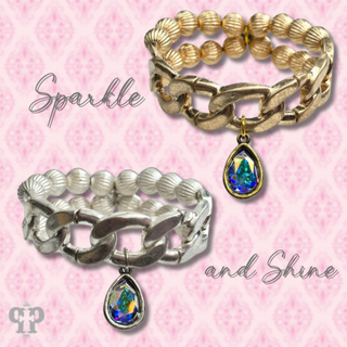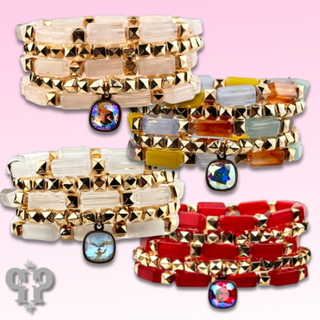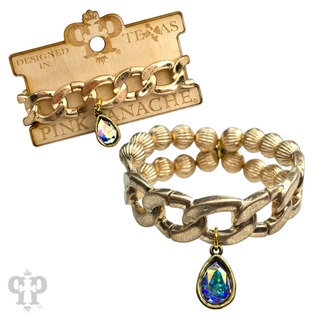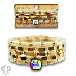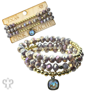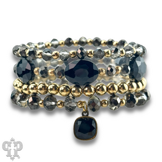Faceted crystal and gold three strand beaded bracelet with Austrian crystal