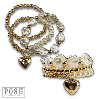 Glass and acrylic oval bead bracelet set with Austrian crystal charm