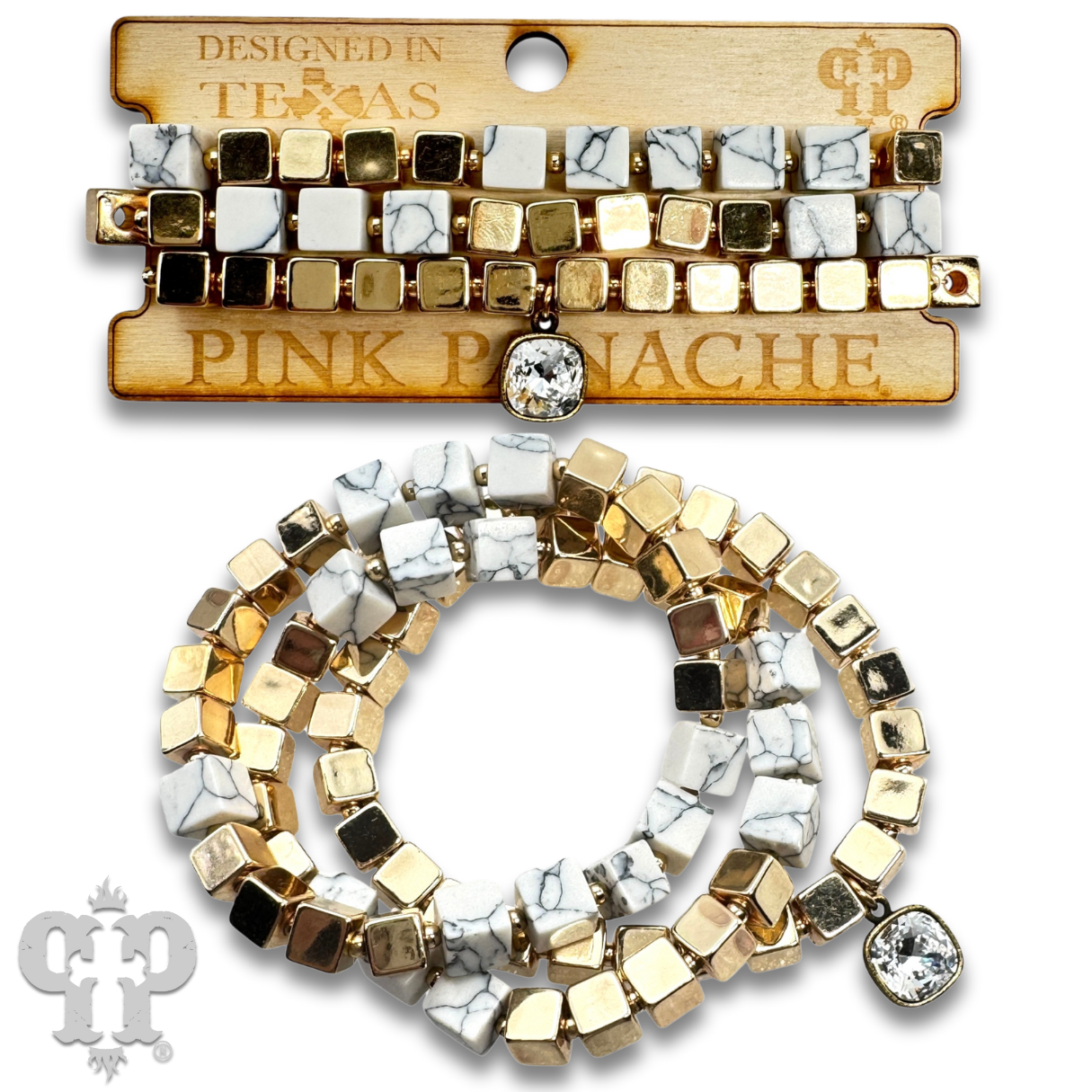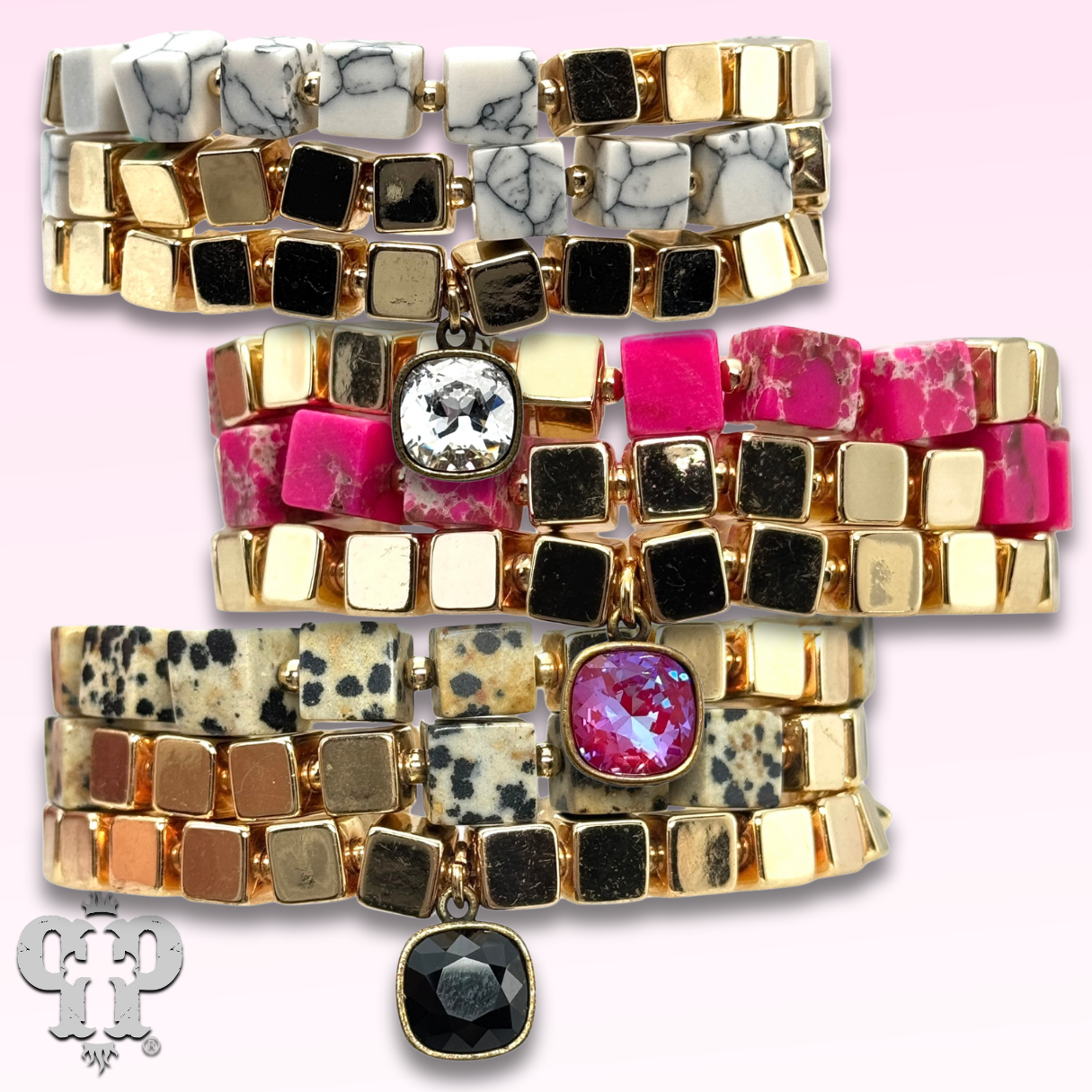 Square stone and gold bead bracelet set with Austrian crystal - LC