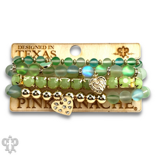 Three strand bracelet stack with screw lock charm and Austrian crystal
