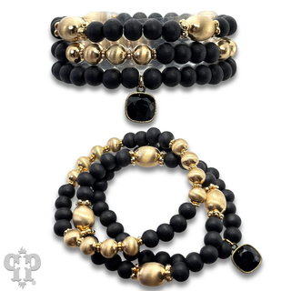 Square stone and gold bead bracelet set with Austrian crystal - LC