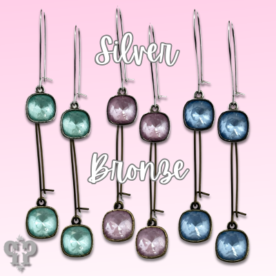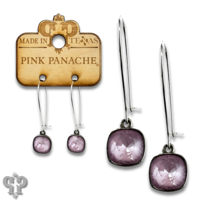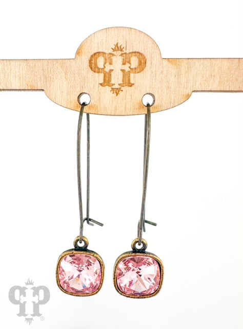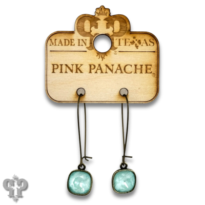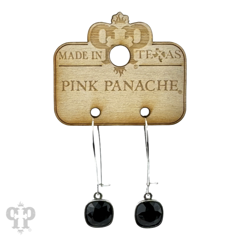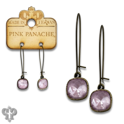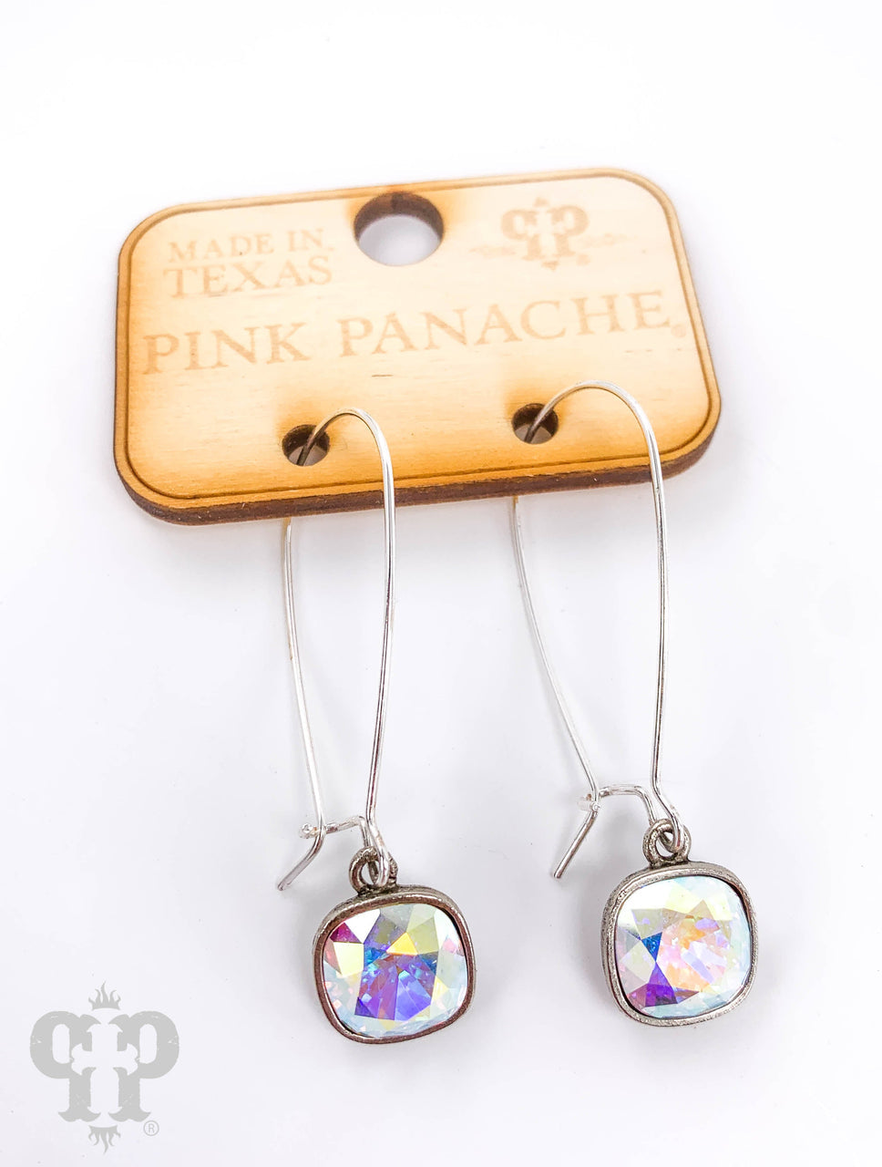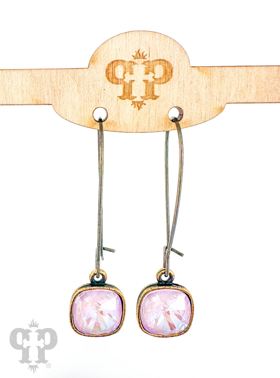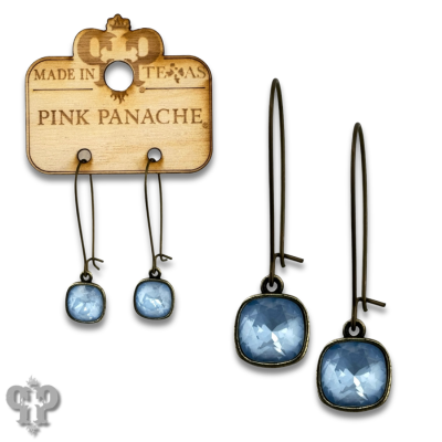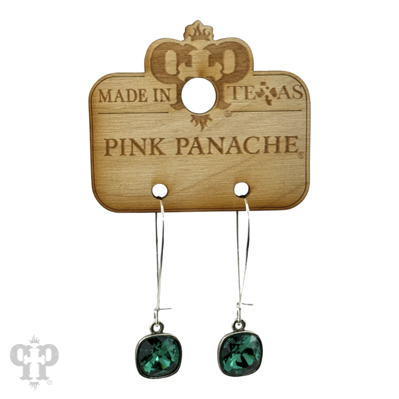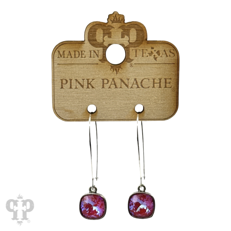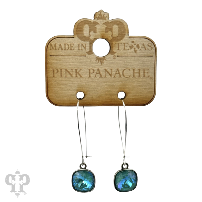 This kidney wire earring features a 10mm Austrian crystal stone. The stone is in a brass plated setting that was custom made for Pink Panache in the USA. 10mm is approximately .4 inches. The earring is approximately 1.75 inches in total length.