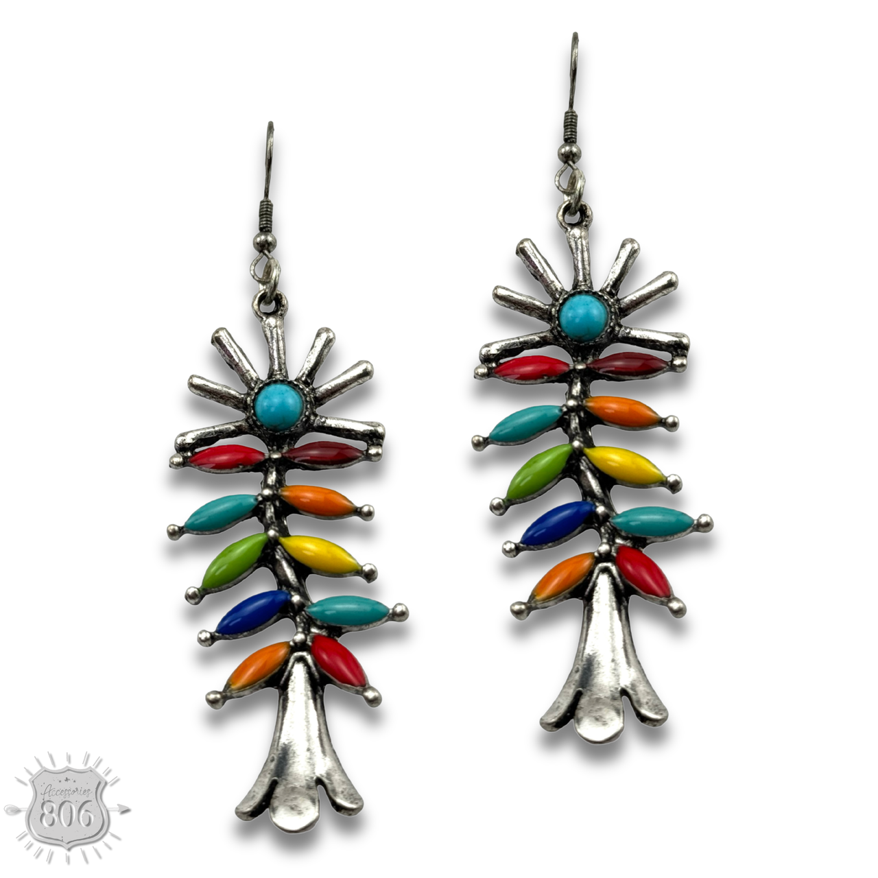 These southwest style flower blossom earrings have colorful dyed stones.