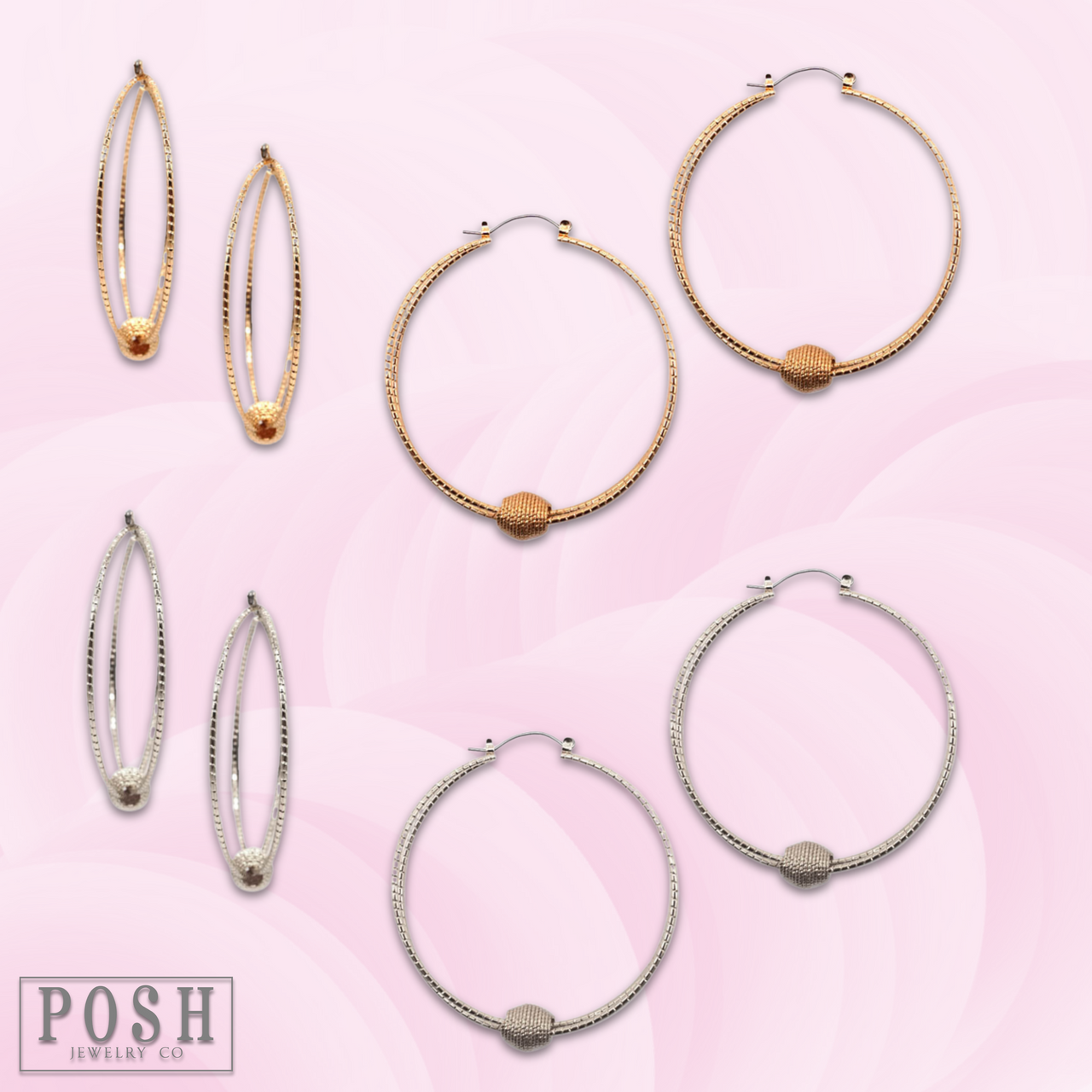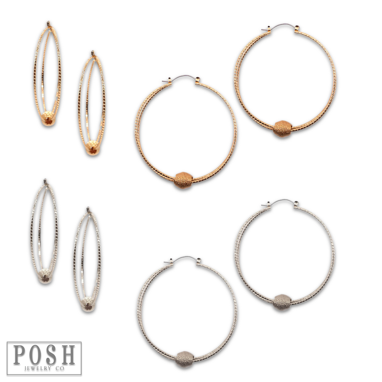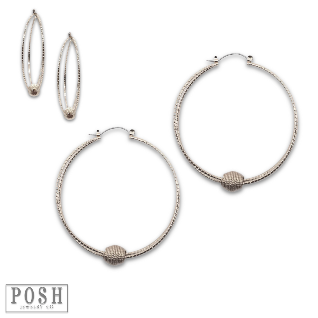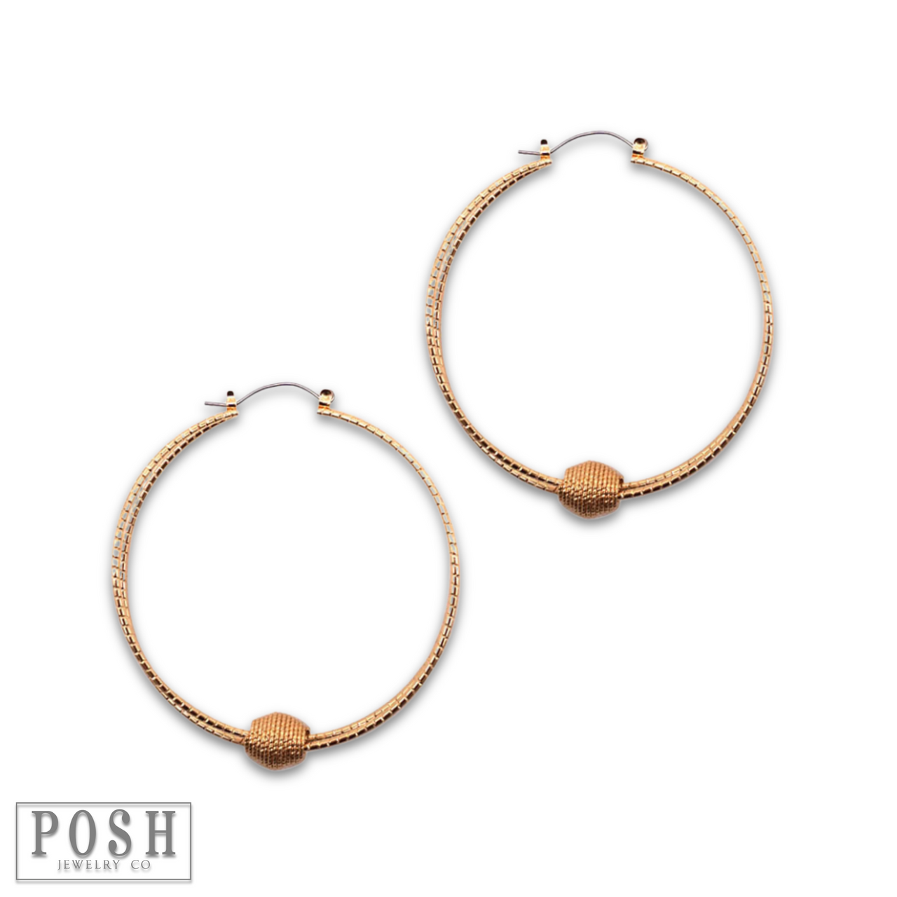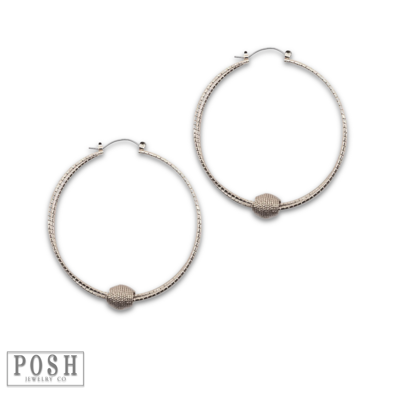 Snag these textured hoop earrings featuring a floating charm in the shape of an oval bead!