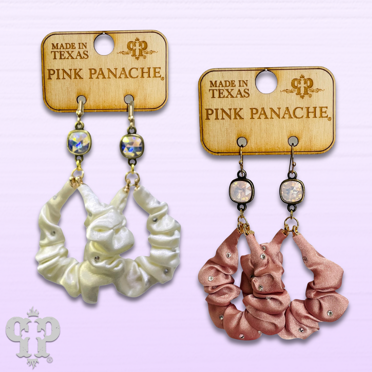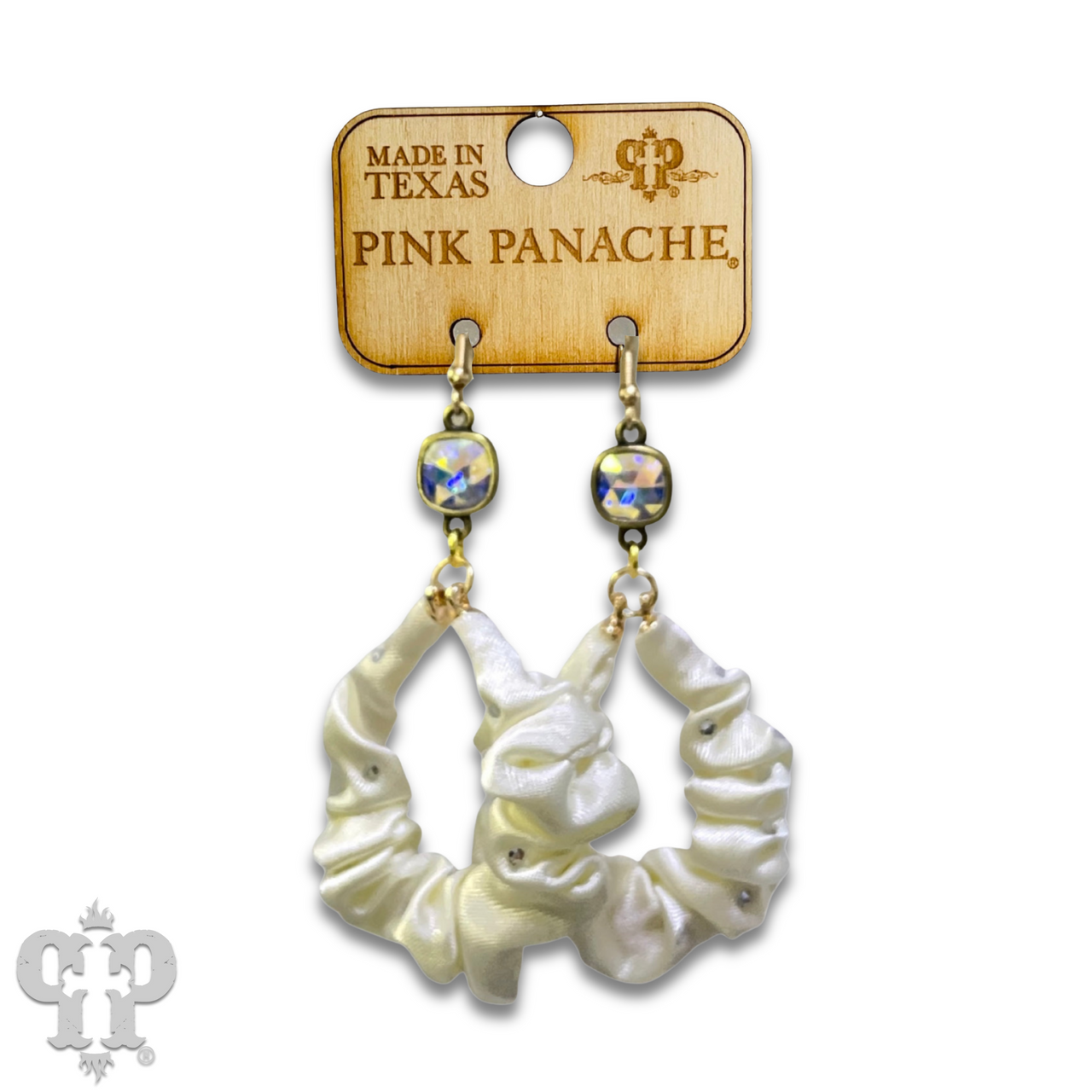 Ignite your style with our fun cream scrunchie adorned with an Austrian crystals.