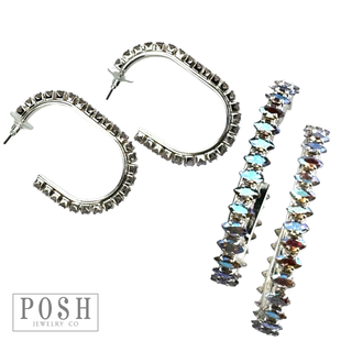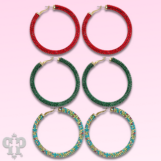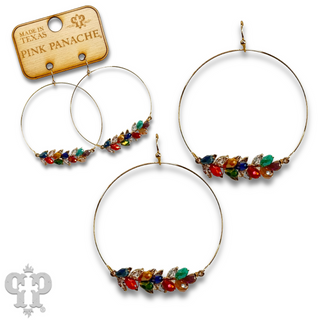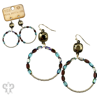 Bead hoop earring with rhinestone teardrop charm