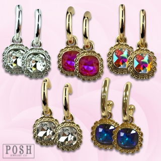 Flower bead and circle earring with Austrian crystal