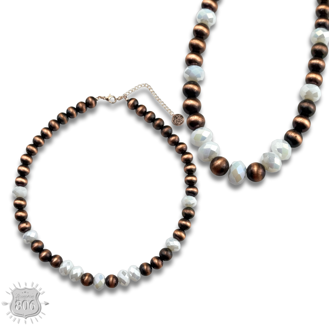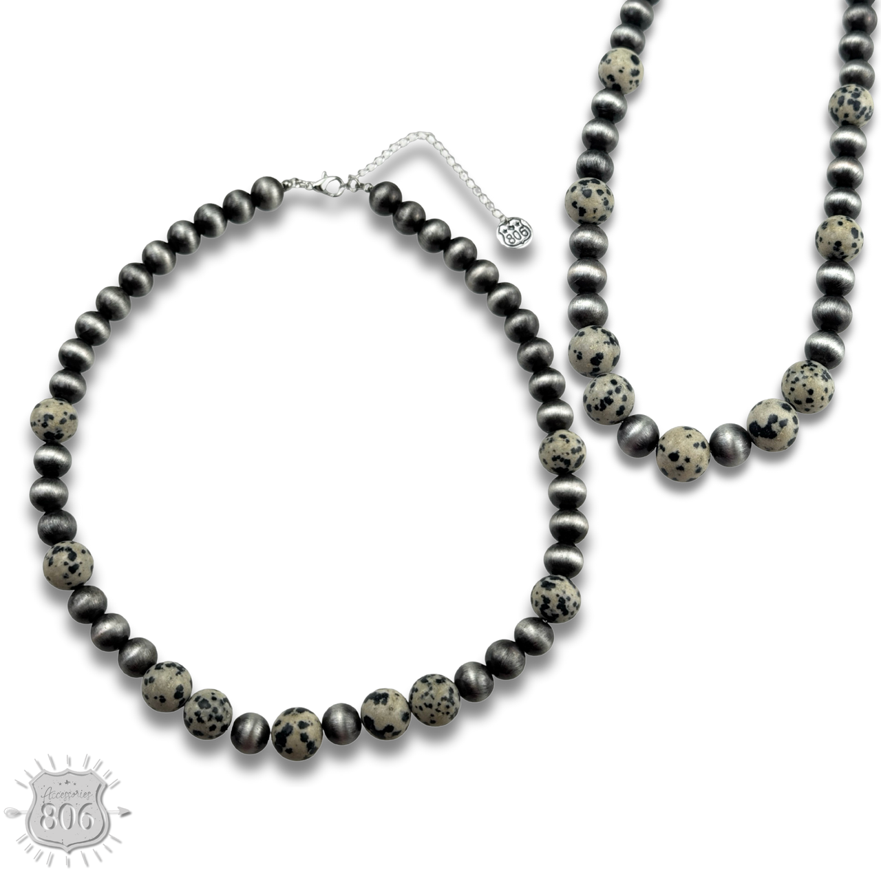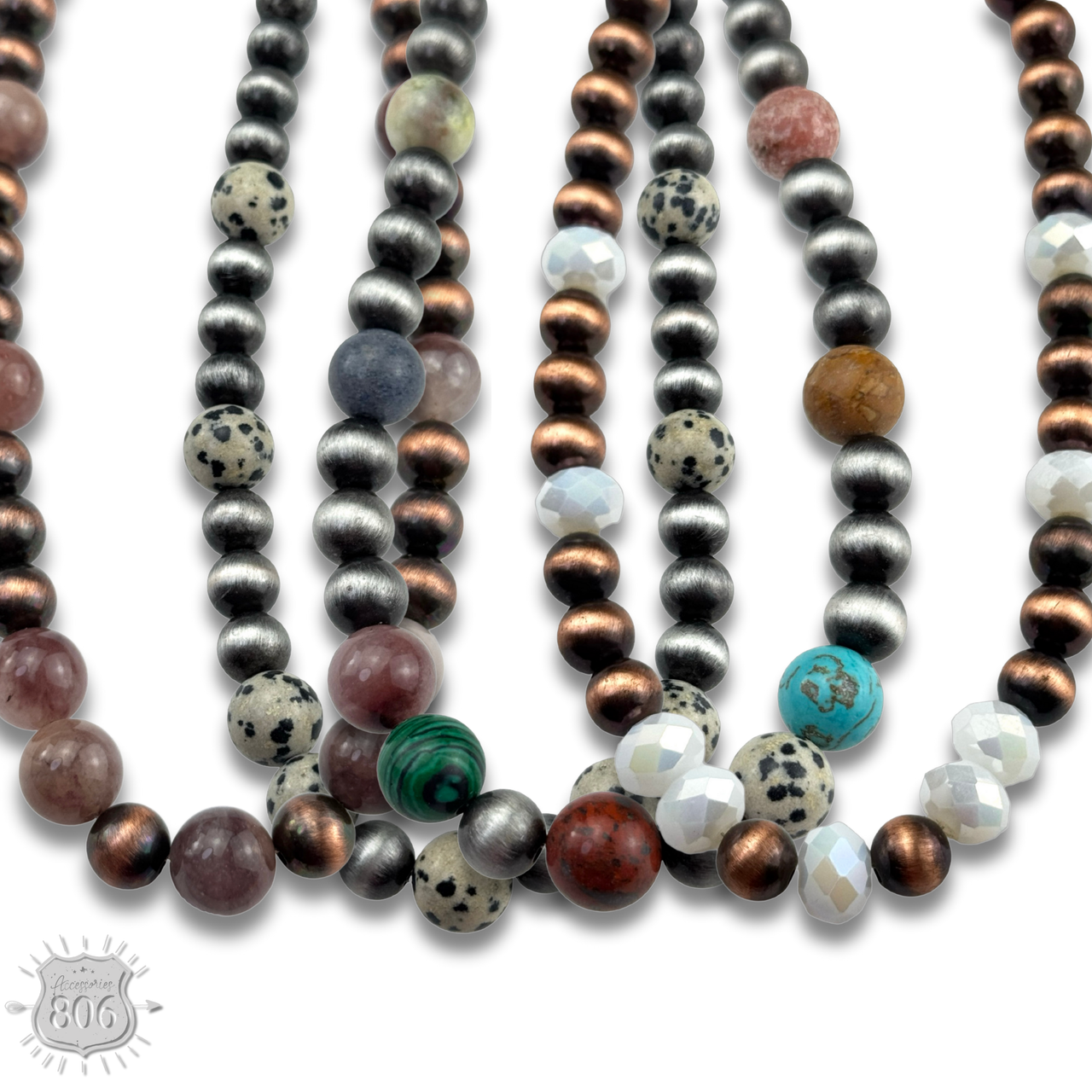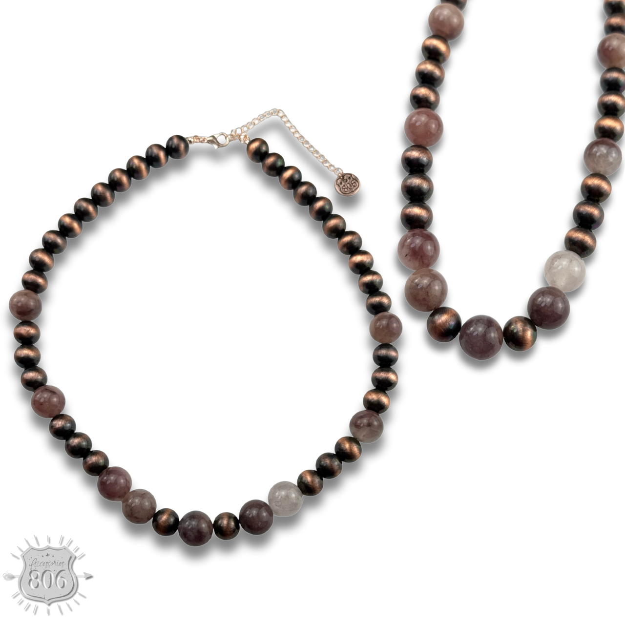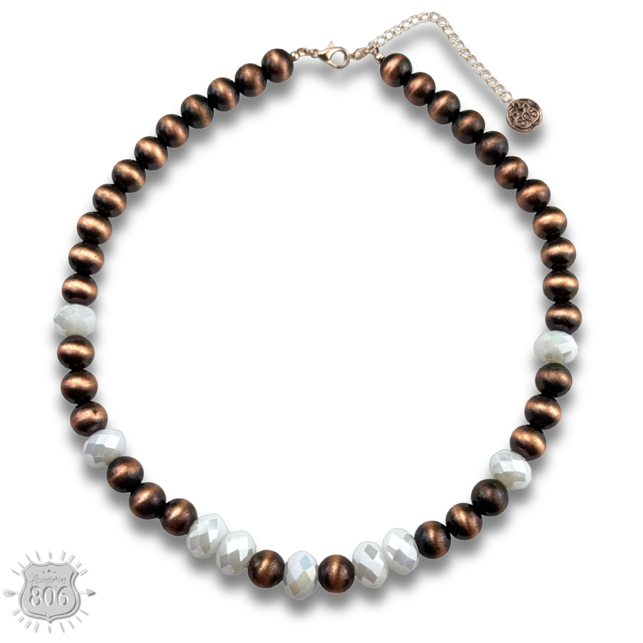 Get ready to make a statement with this necklace, complete with burnished and beautiful stone beads.