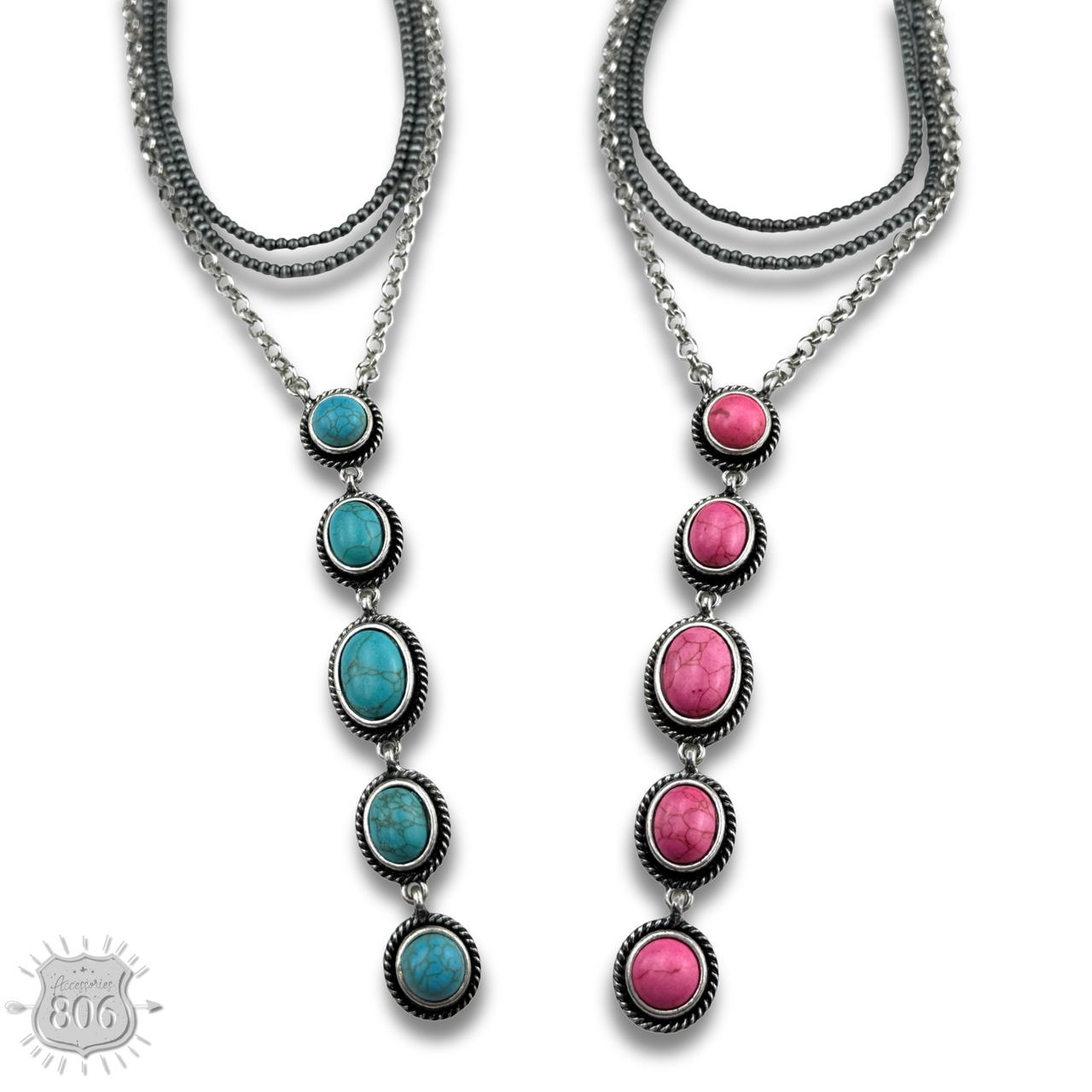 Burnished bead and stone drop Y necklace