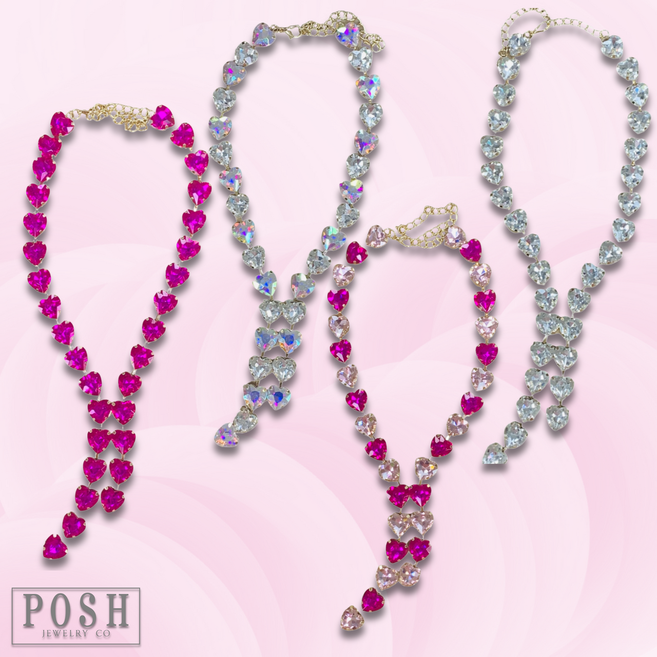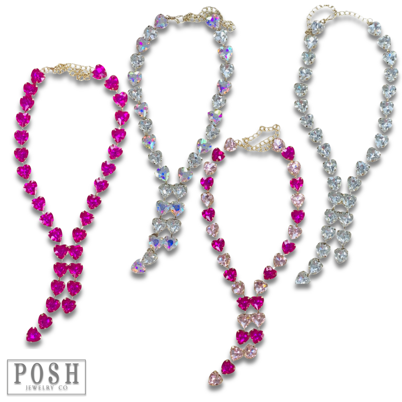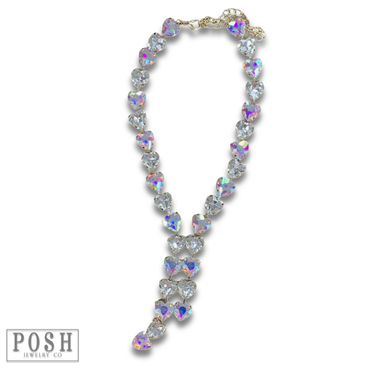 Rhinestone heart lariat necklace