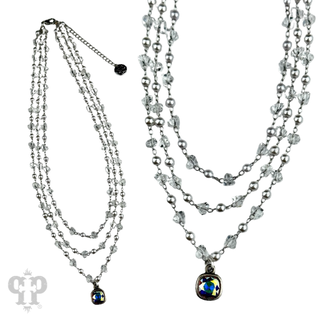 Three strand pearl and faceted acrylic bead necklace, Austrian crystal