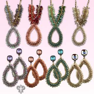 Silver and iridescent rhinestone concho statement necklace jewelry set