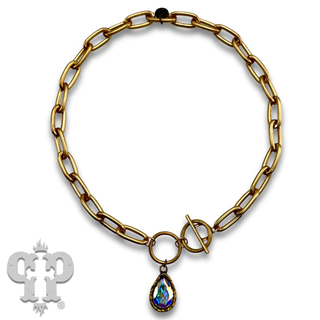 Linked bead necklace with Austrian crystal Santa Fe teardrop pendant