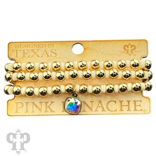Three strand rubber bead bracelet set, Austrian crystal