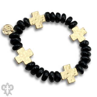 Gold cross and black beaded bracelet