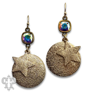 Gold star and disc earring, Austrian crystal