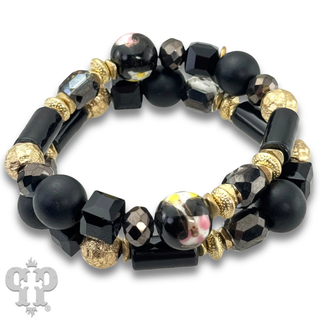 Rubberized saucer bead bracelet stack - LC