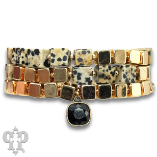 Square stone and gold bead bracelet set with Austrian crystal - LC