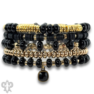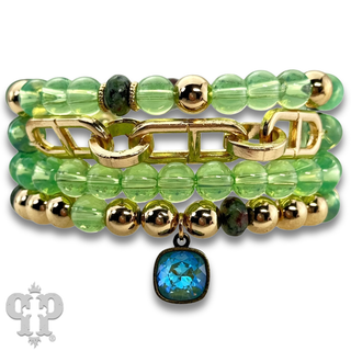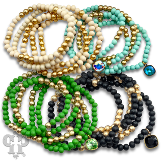 Colorful and gold bead charm bracelet stack