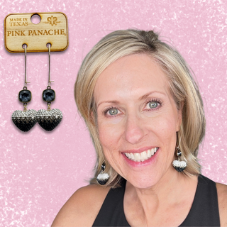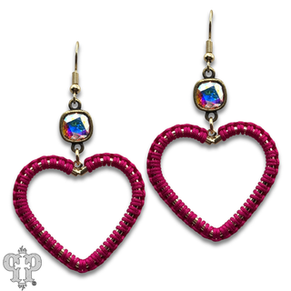 Bead wrapped scroll heart earrings with Austrian crystals