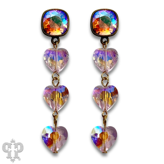 Triple crystal heart earring, Austrian crystal