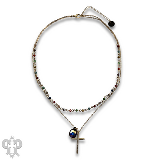 Double teardrop earring with beads and Austrian crystal - LC