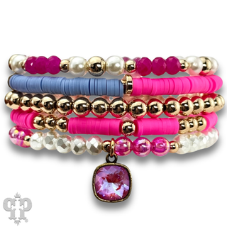 Mixed bead bracelet set with Austrian crystal
